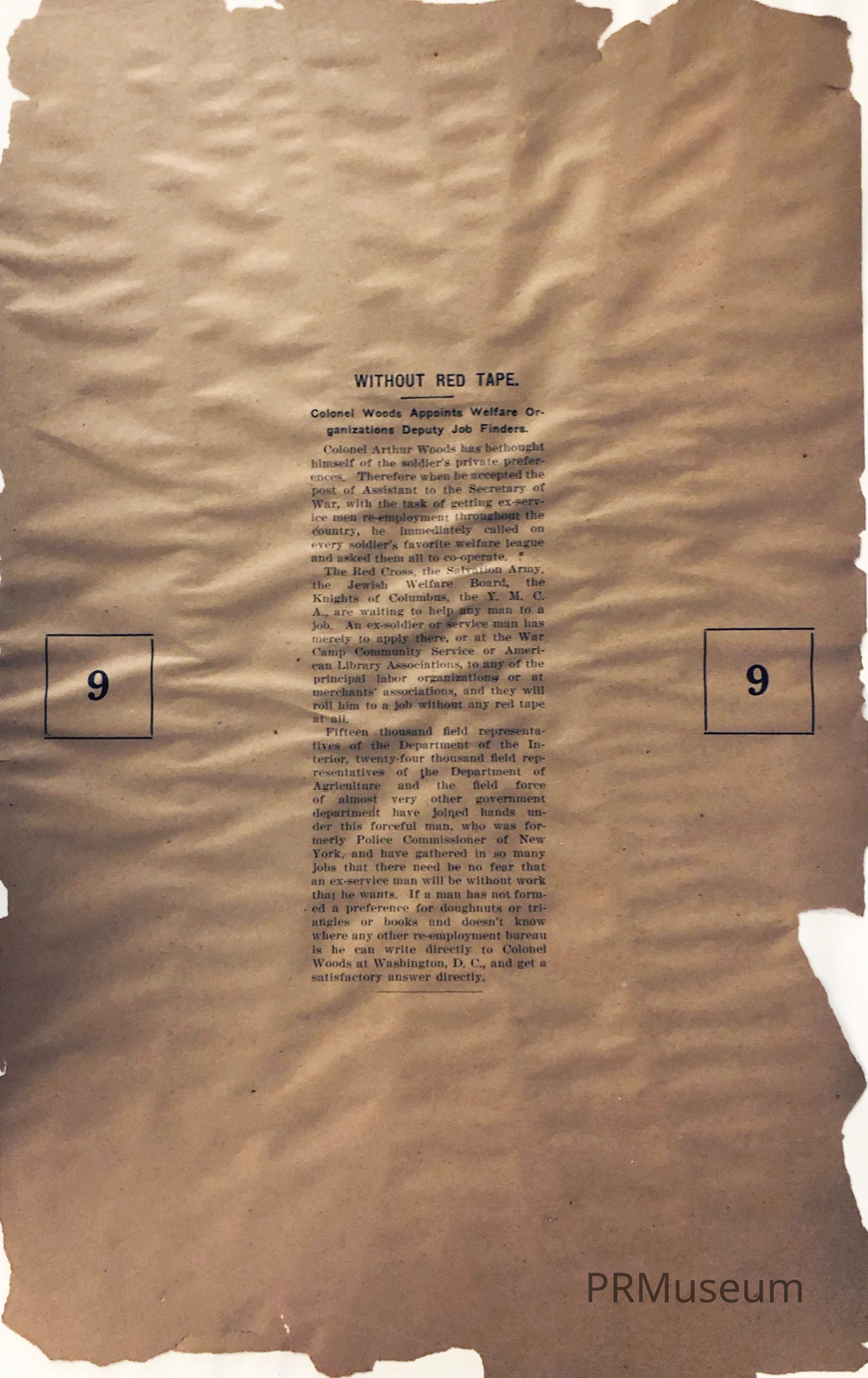 WWI Mat #9 from the Office of Assistant to Secretary of War: Without Red Tape: Colonel Woods Appoints Organizations Deputy Job FindersEntry/Object ID