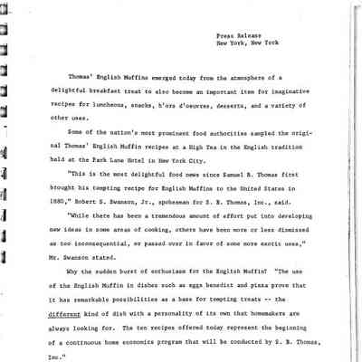 Thomas English Muffins 100th Anniversary Press Release