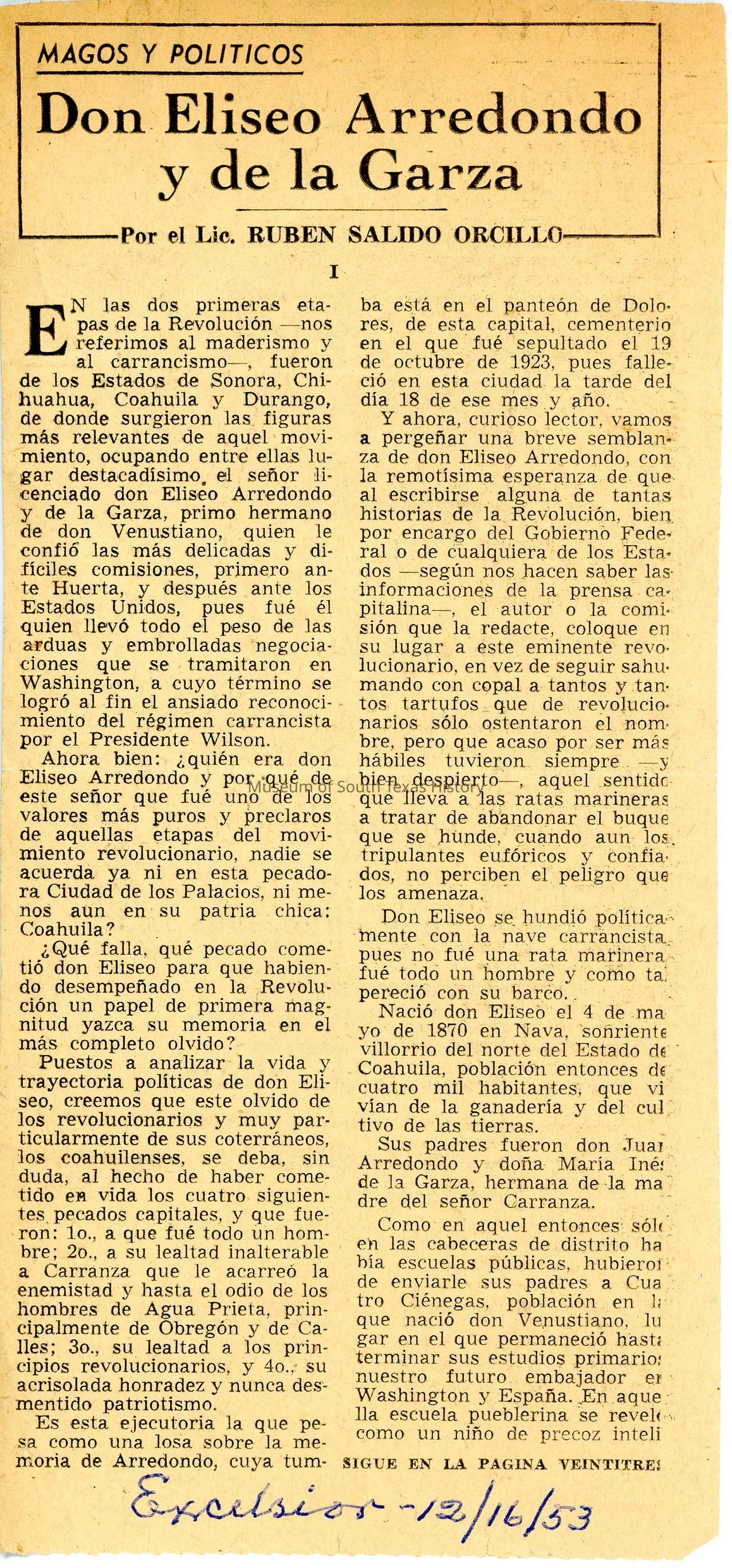 Agustin S. de la Garza Collection