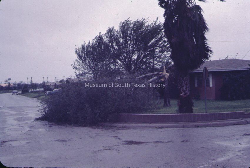 Downed tree on 6th Street after Hurricane Beulah
