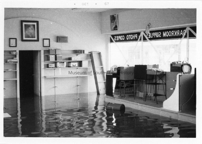 Views in and around Edinburg in the aftermath of Hurricane Beulah, 1967. The system made landfall in Texas around late September and caused major flooding, wind, and tornado damage.