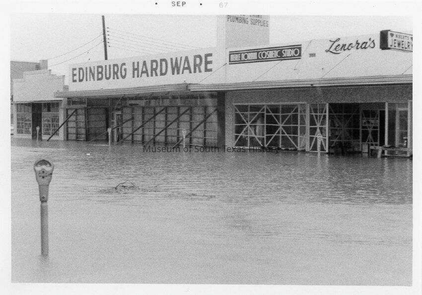 Views in and around Edinburg in the aftermath of Hurricane Beulah in 1967. The system made landfall in Texas around late September and caused major flooding, wind, and tornado damage.