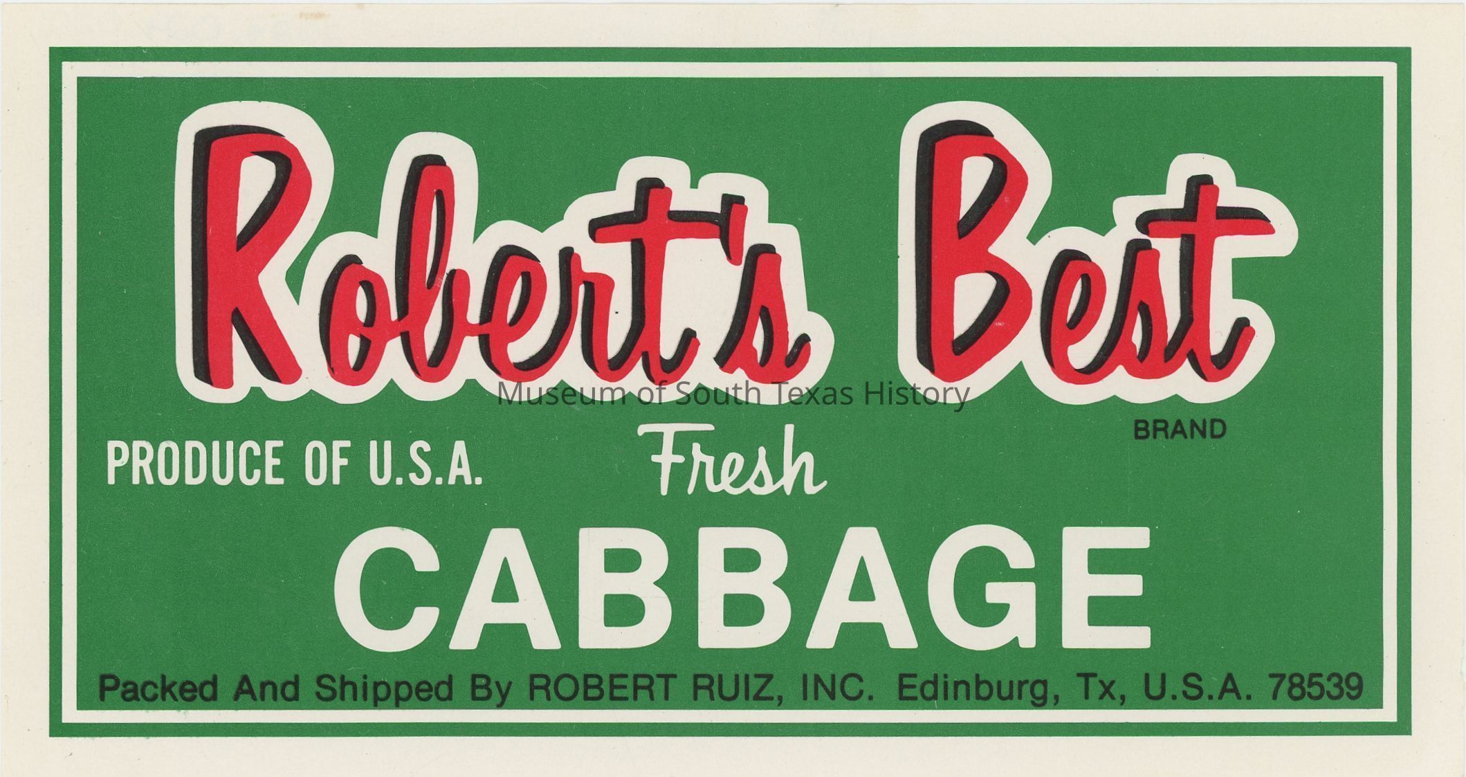 Robert’s Best Brand fresh cabbage packed and shipped by Robert Ruiz Inc., Edinburg, TX 78539Collection