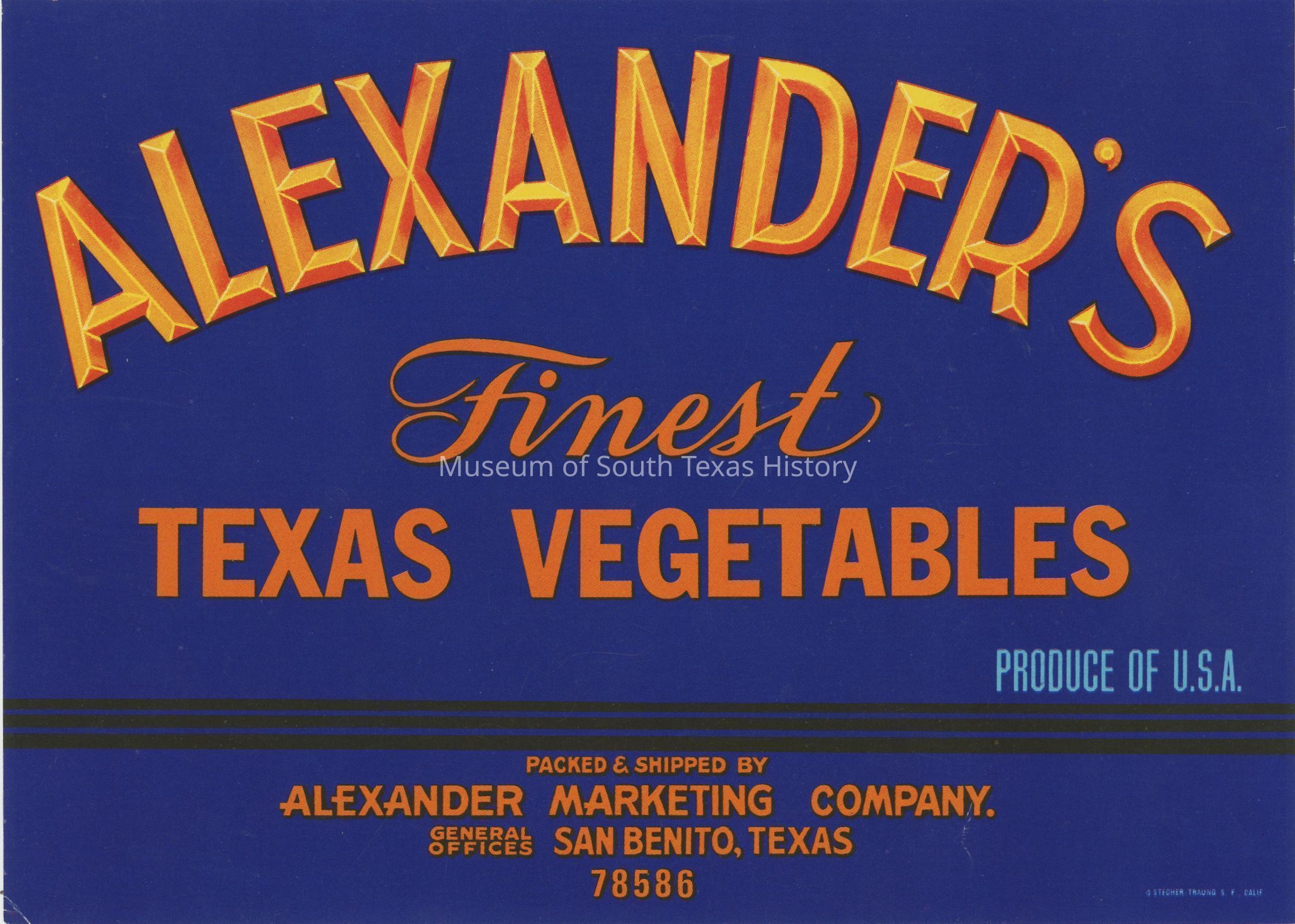 Alexander’s finest Texas Vegetables packed and shipped by Alexander Marketing Company, San Benito, TX 78586Collection