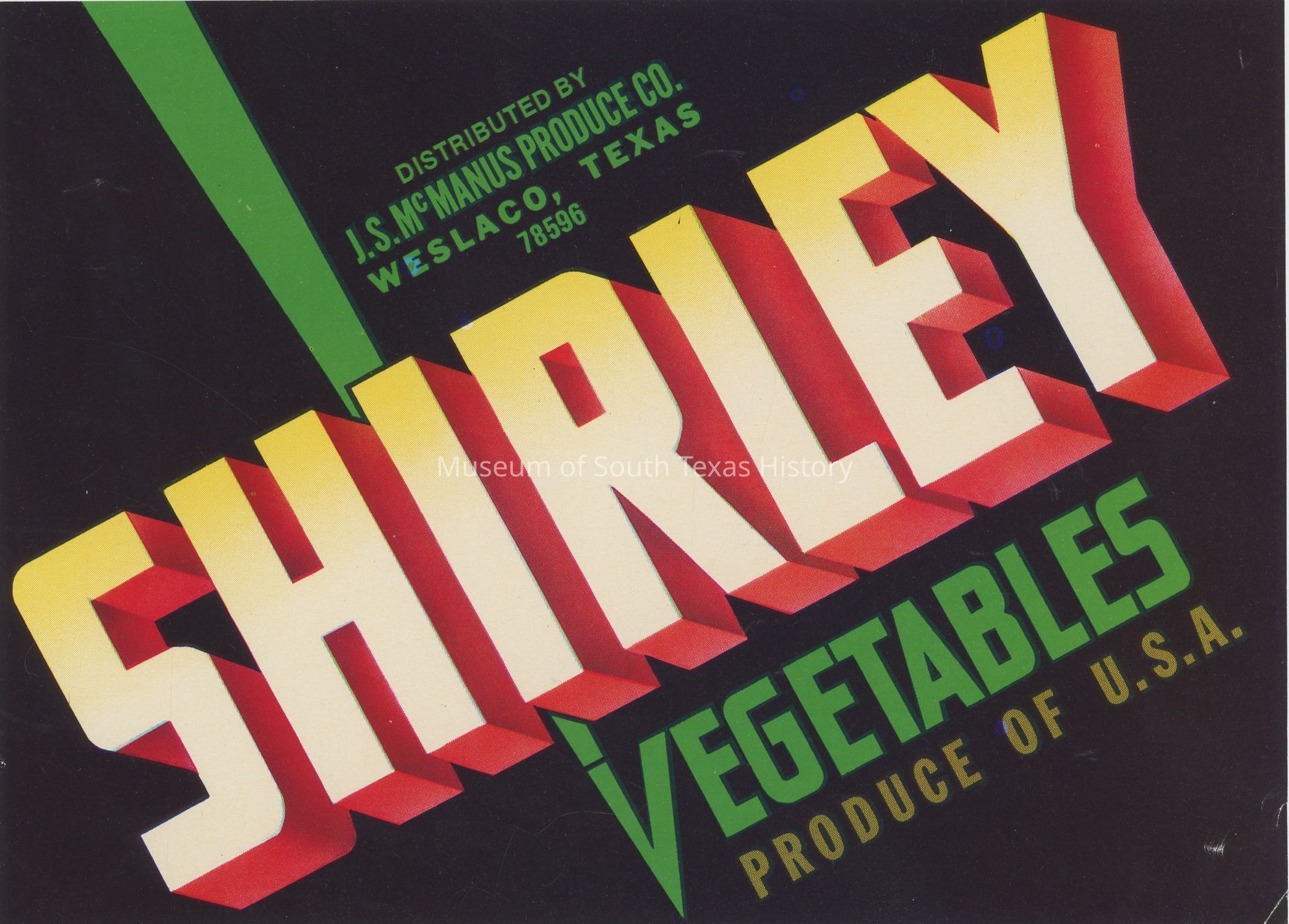 Shirley vegetables distributed by J.S. McManus Produce Company, Weslaco, Texas 78596Collection
