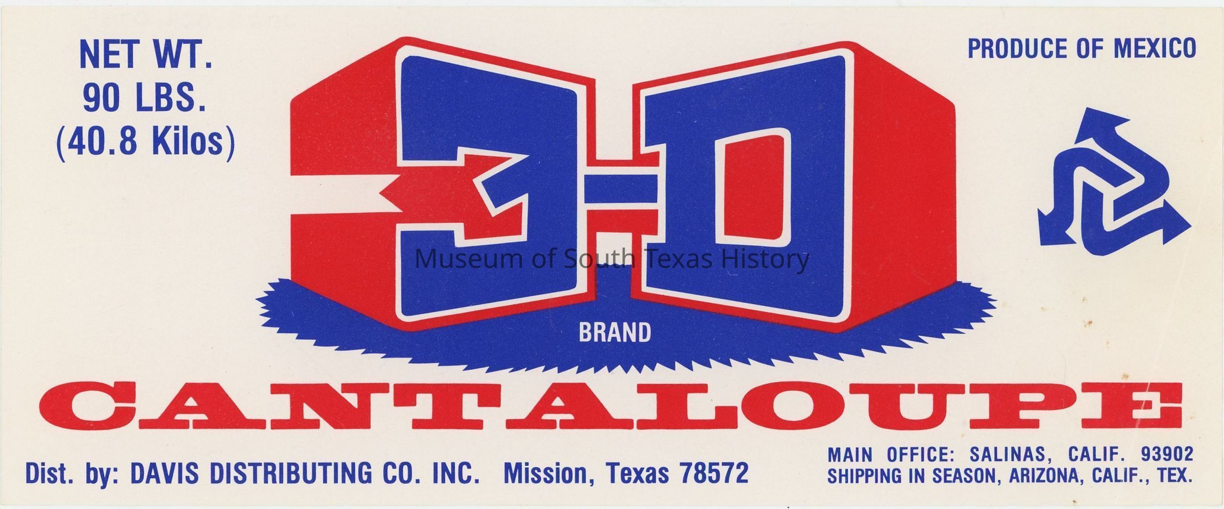 3-D Brand cantaloupe, distributed by Davis Distributing Co., Mission, Texas 78572Collection
