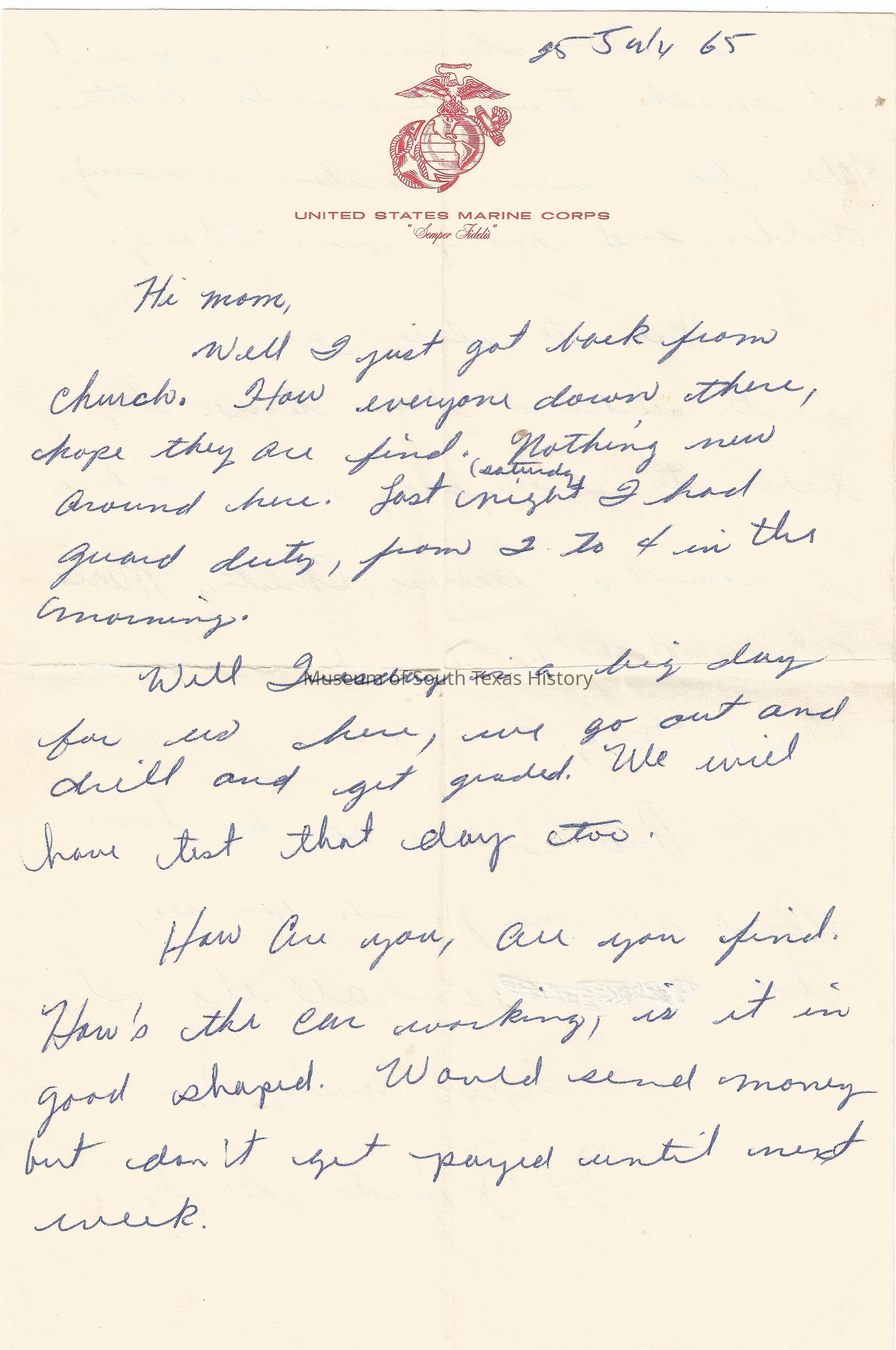Letter from Alfred Gonzalez to his mother Dolia, July 25, 1965Collection