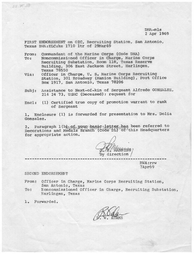 First Endorsement of OIC Recruiting Station, San Antonio