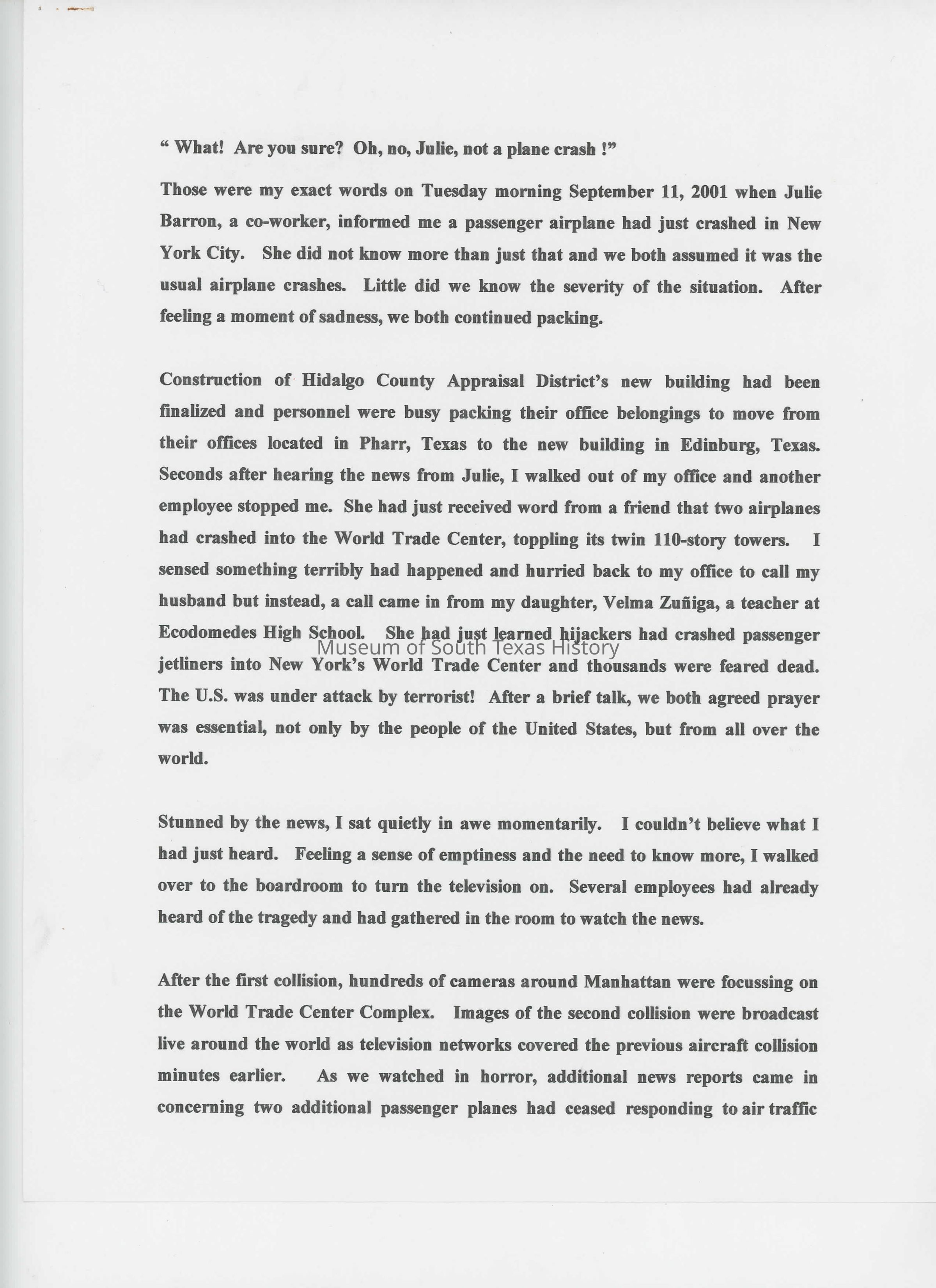 Essay: Memory of Sept. 11, 2001