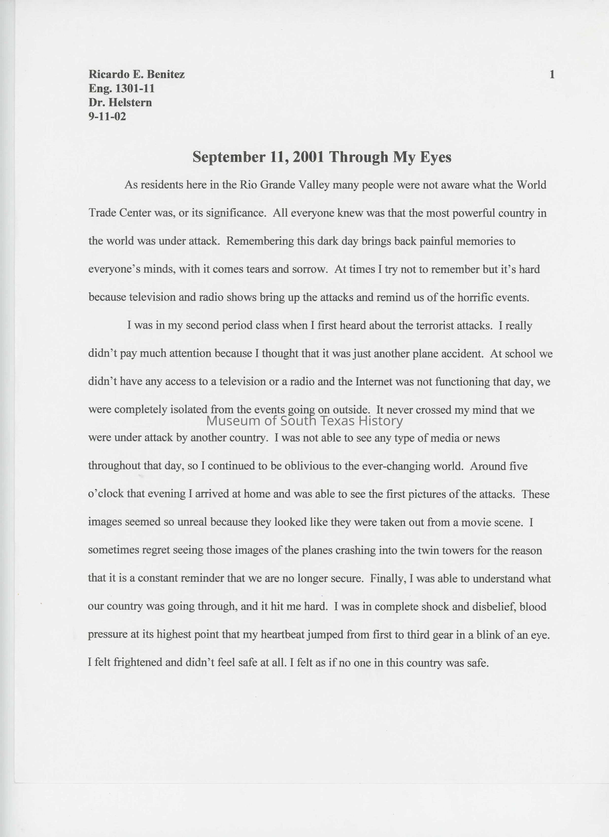 Essay: September 11, 2001 Through my Eyes