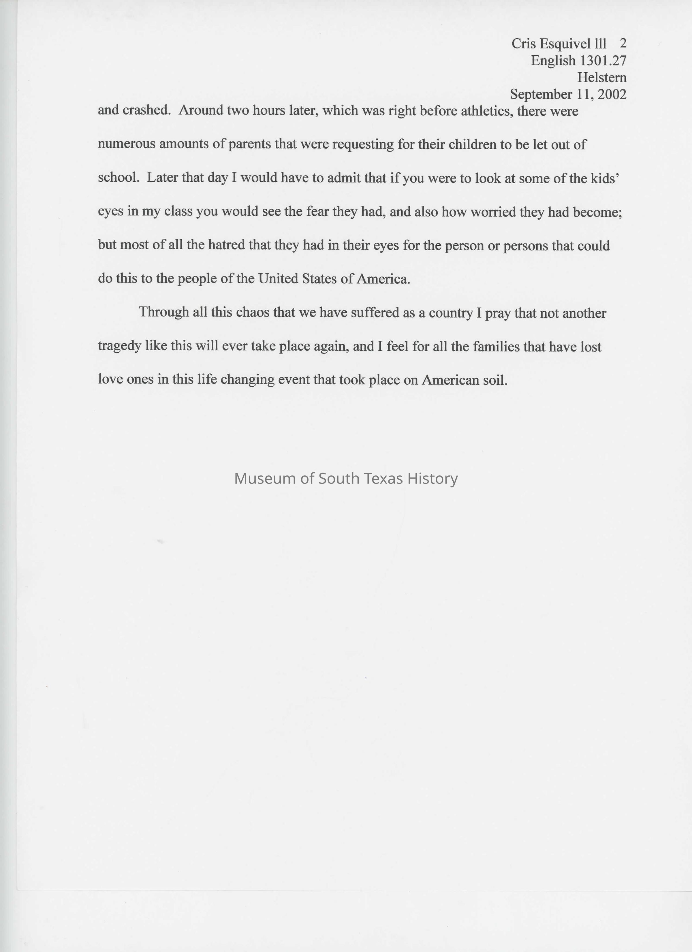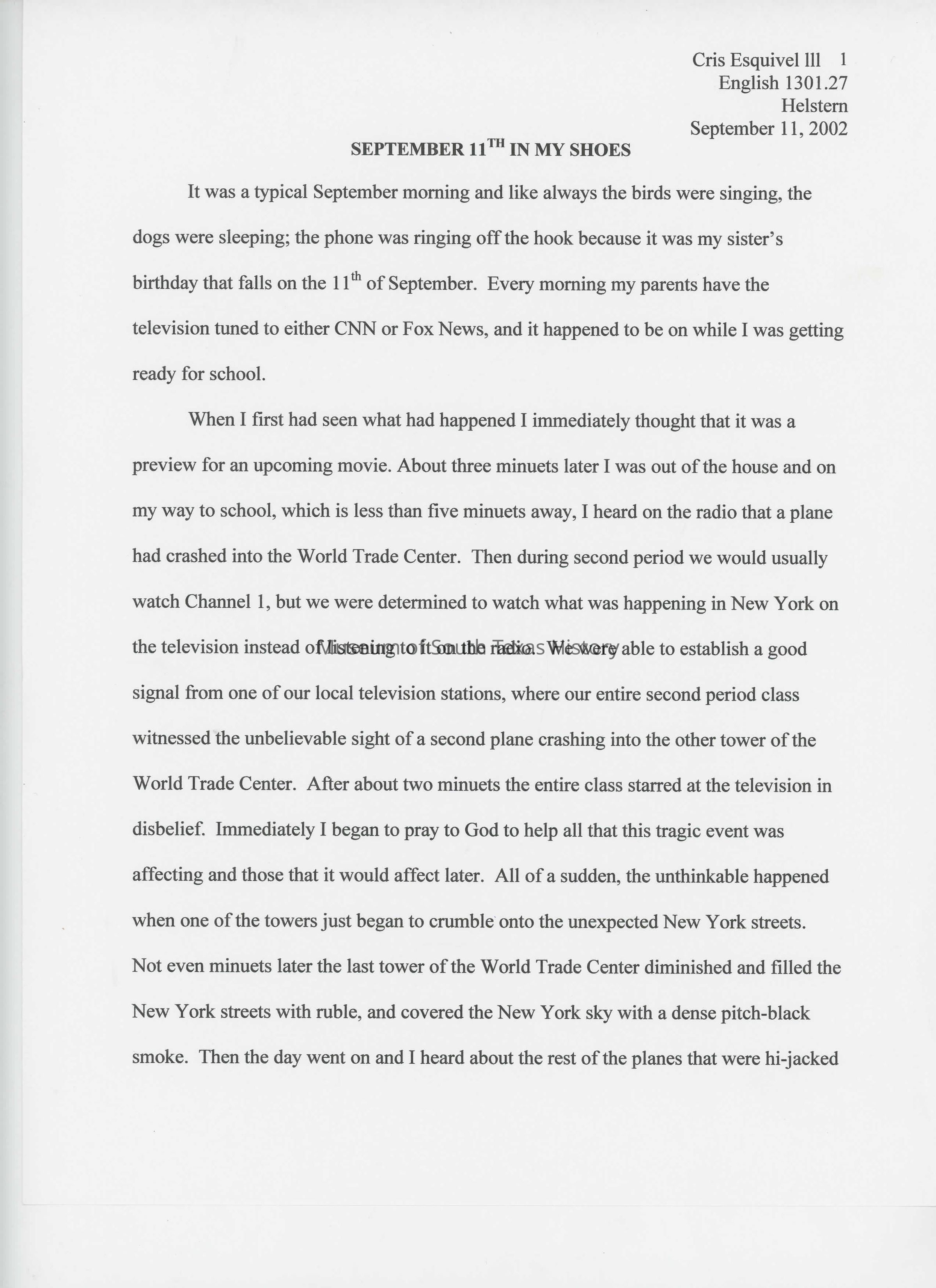 Essay: September 11th in my Shoes
