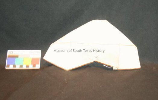 Nurse's cap or hat worn by Stella Alamia Garza in the nursing / medical field. White fabric hat or cap is folded and fastened with a small metal button and buttonhole. Unknown if cap worn with cloak, .001, or later in wearer's career.Collection