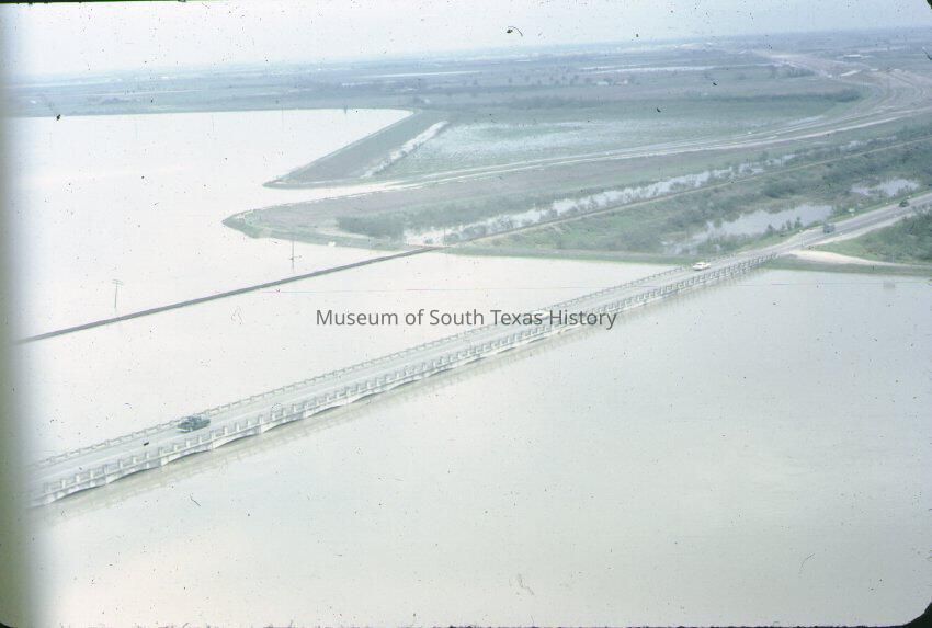 Floodway looking NW at expressway bridge under water