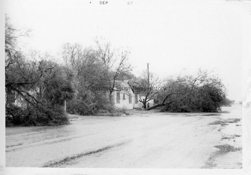 Views in and around Edinburg in the aftermath of Hurricane Beulah, 1967. The system made landfall in Texas around late September and caused major flooding, wind, and tornado damage.Collection