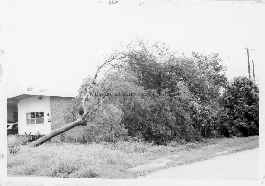 Views in and around Edinburg in the aftermath of Hurricane Beulah, 1967. The system made landfall in Texas around late September and caused major flooding, wind, and tornado damage.Collection