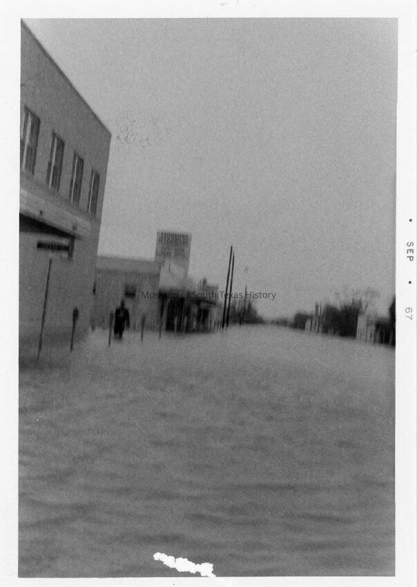 Views in and around Edinburg in the aftermath of Hurricane Beulah in 1967. The system made landfall in Texas around late September and caused major flooding, wind, and tornado damage.Collection