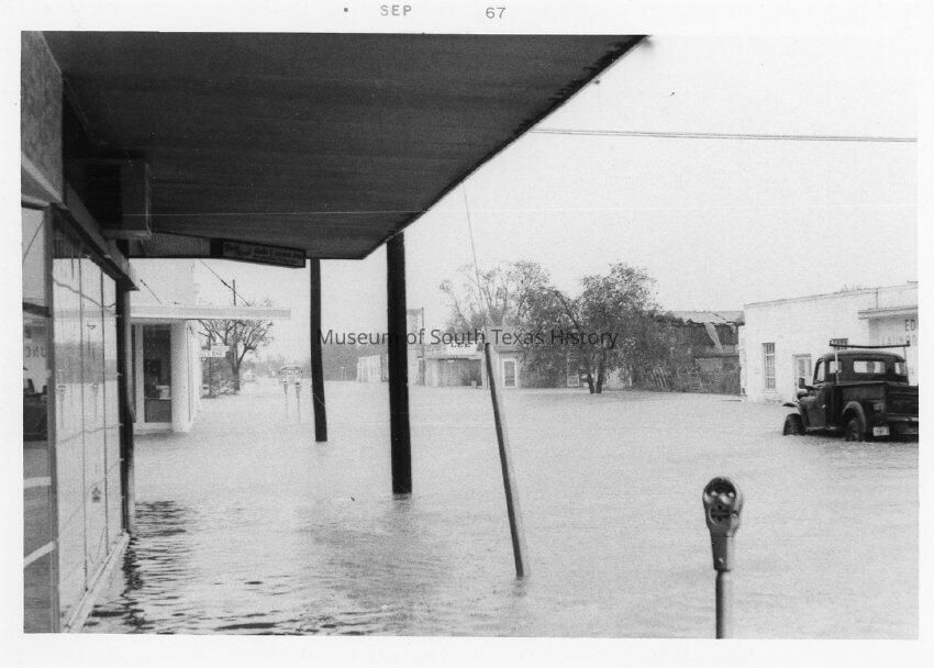 Views in and around Edinburg in the aftermath of Hurricane Beulah in 1967. The system made landfall in Texas around late September and caused major flooding, wind, and tornado damage.Collection