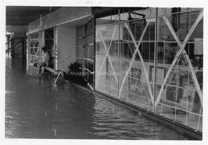 Views in and around Edinburg in the aftermath of Hurricane Beulah, 1967. The system made landfall in Texas around late September and caused major flooding, wind, and tornado damage.Collection