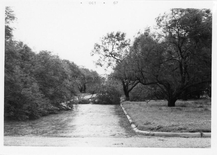 Views in and around Edinburg in the aftermath of Hurricane Beulah, 1967. The system made landfall in Texas around late September and caused major flooding, wind, and tornado damage.Collection