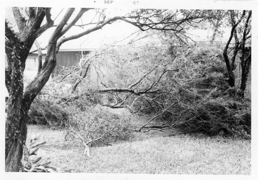 Views in and around Edinburg in the aftermath of Hurricane Beulah, 1967. The system made landfall in Texas around late September and caused major flooding, wind, and tornado damage.Collection