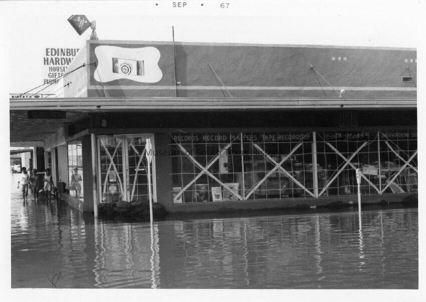 Views in and around Edinburg in the aftermath of Hurricane Beulah, 1967. The system made landfall in Texas around late September and caused major flooding, wind, and tornado damage.