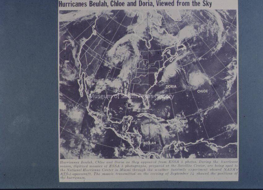 3 hurricanes shown on map (Beulah, Chloe and Doria)
