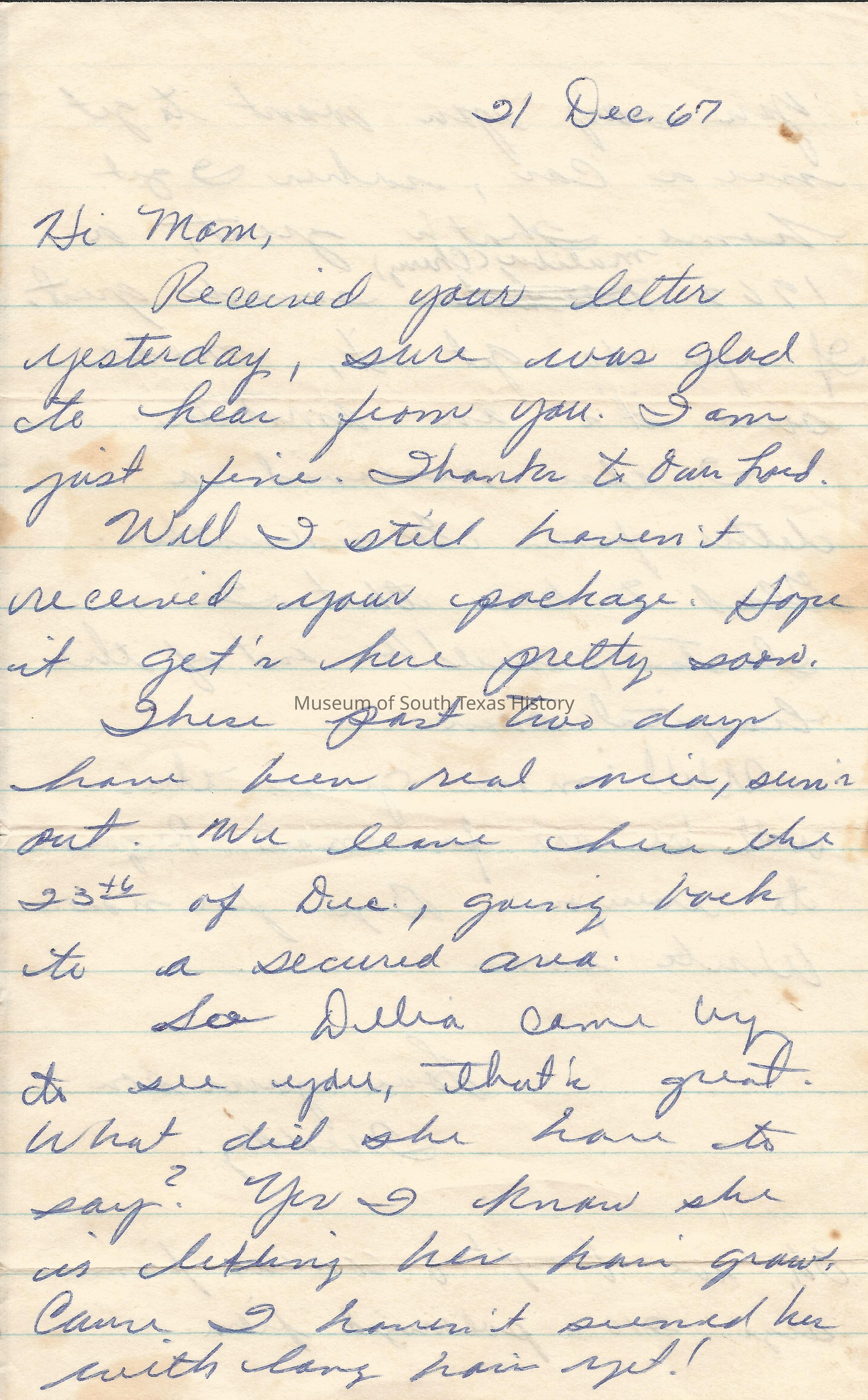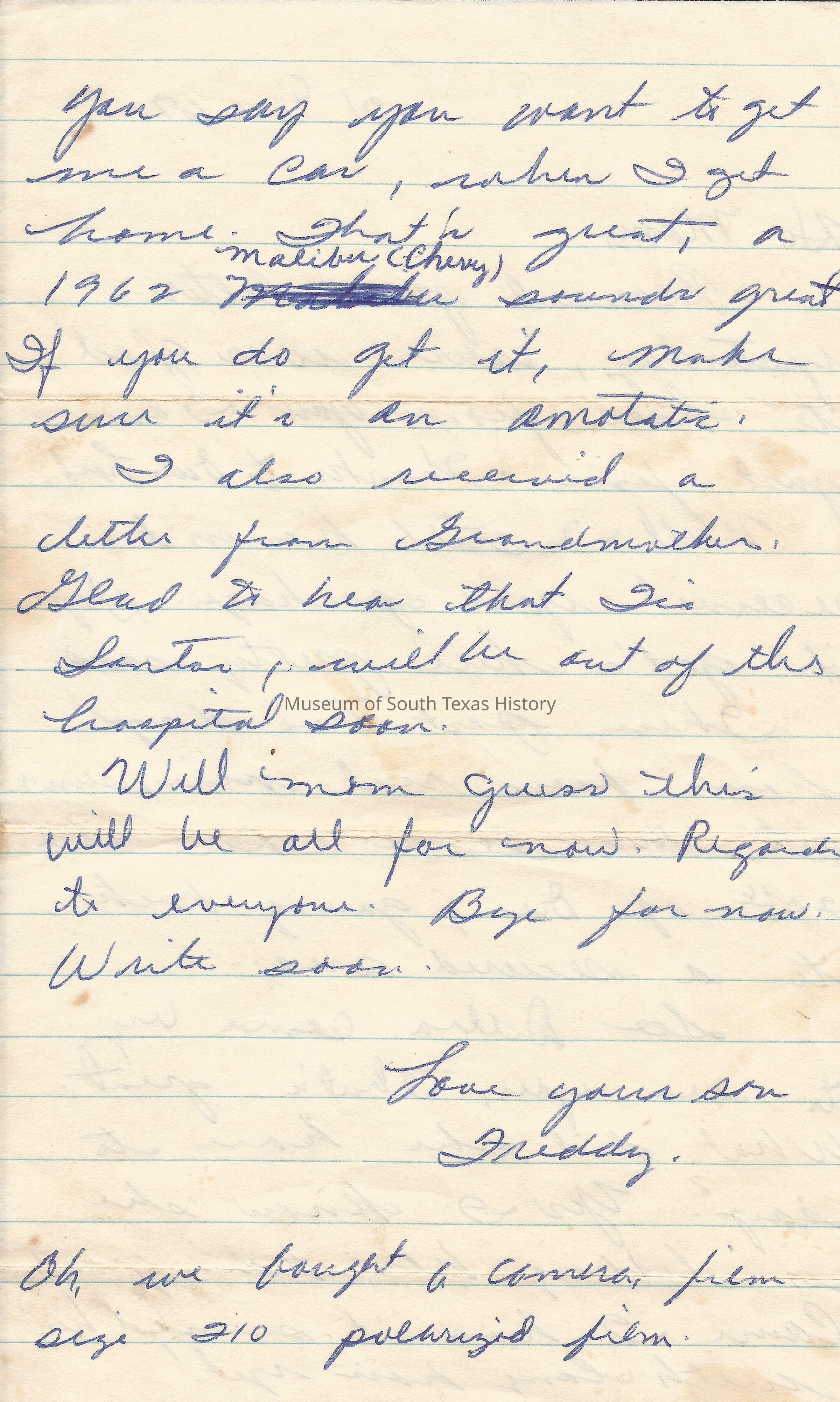 Letter from Freddy Gonzalez to his mother