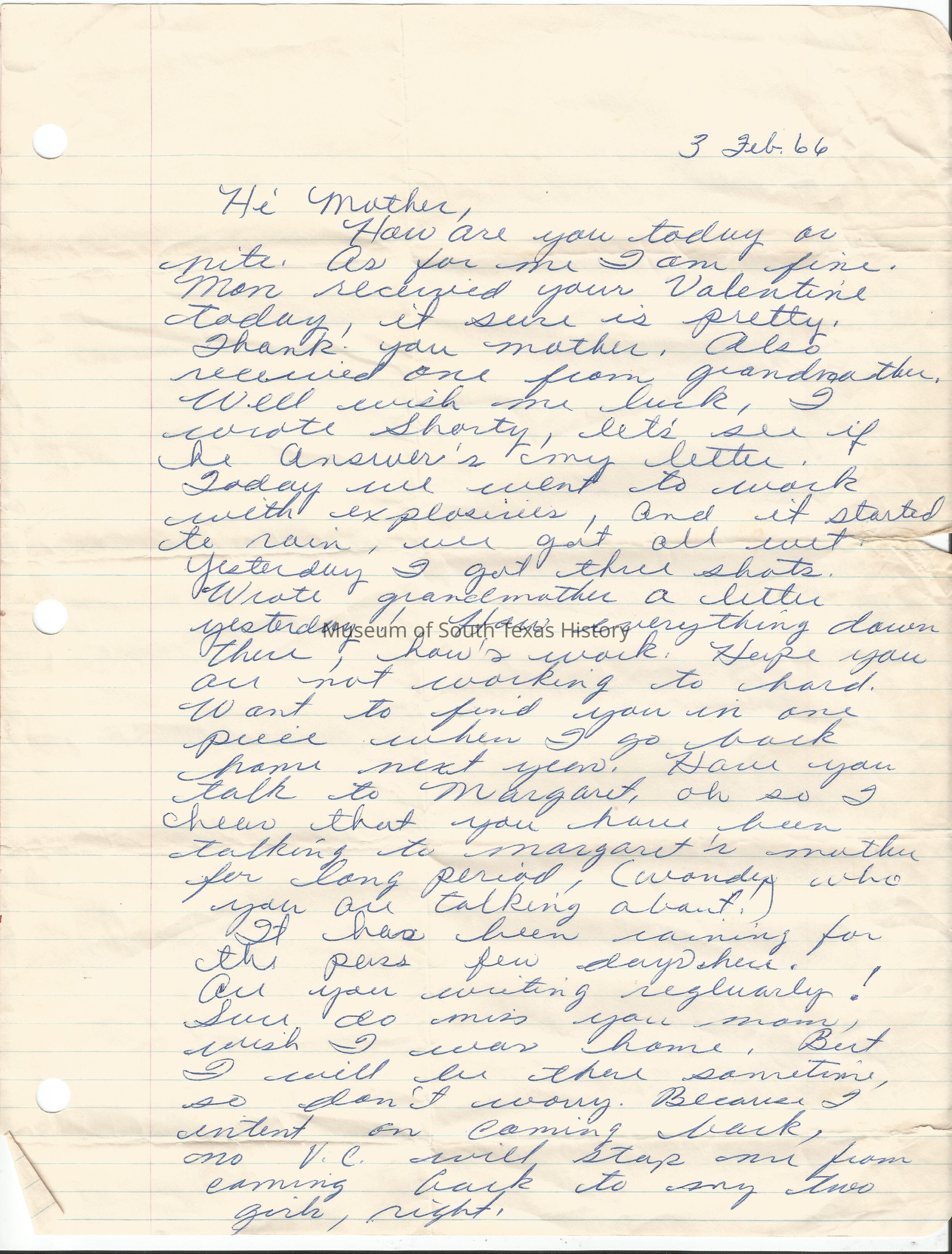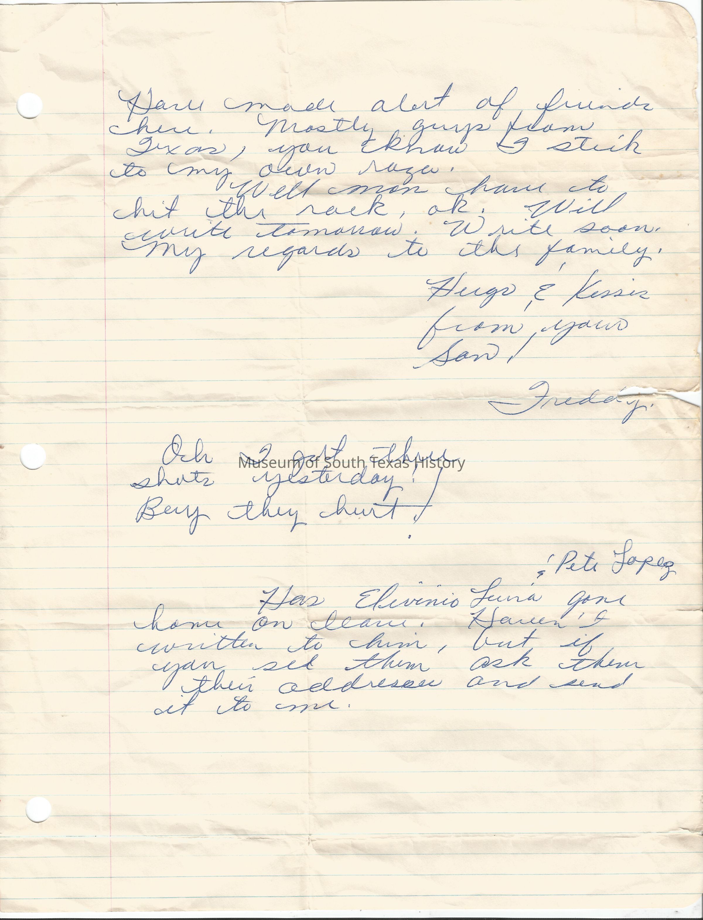 Letter from Freddy Gonzalez to his mother