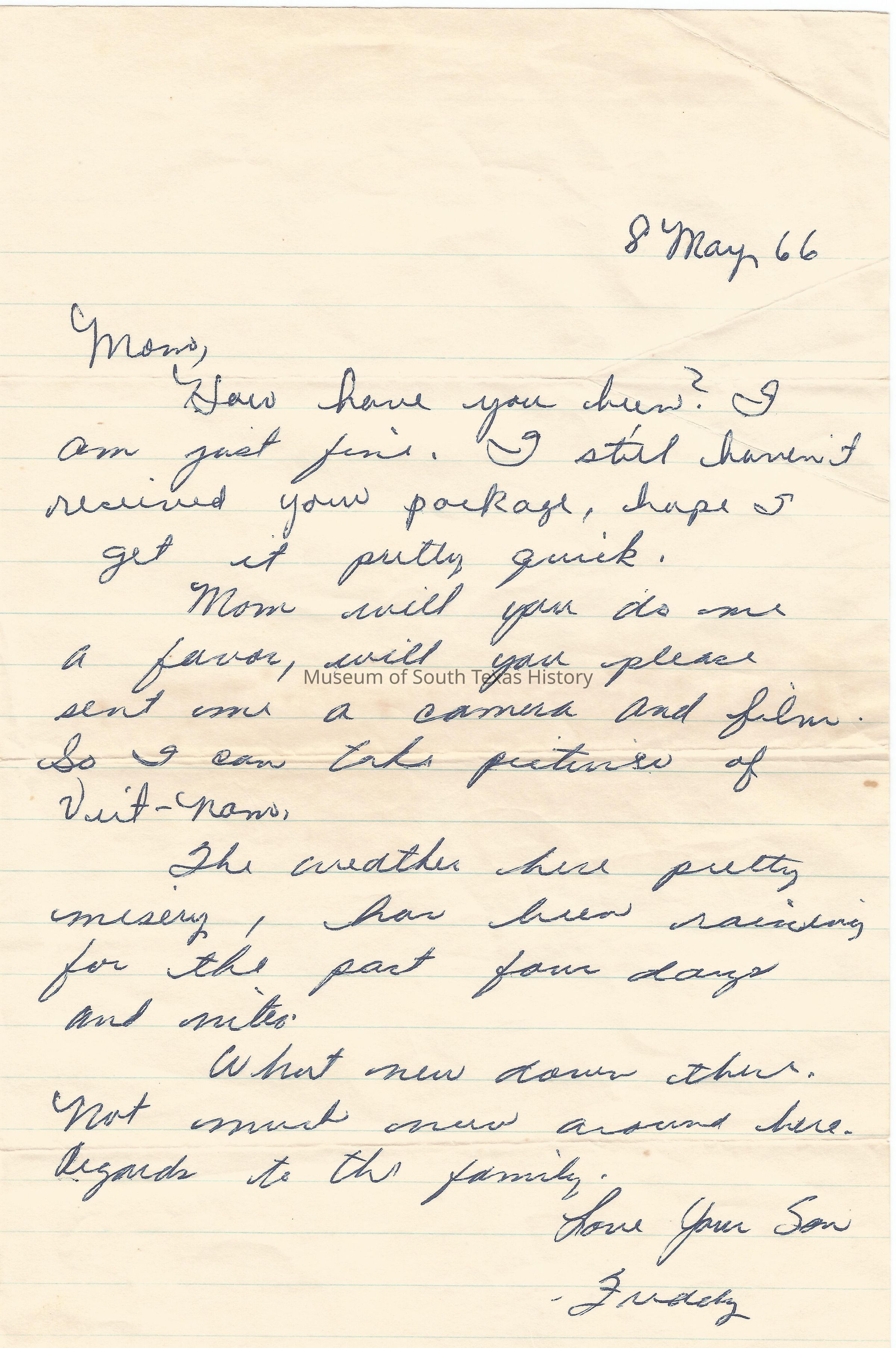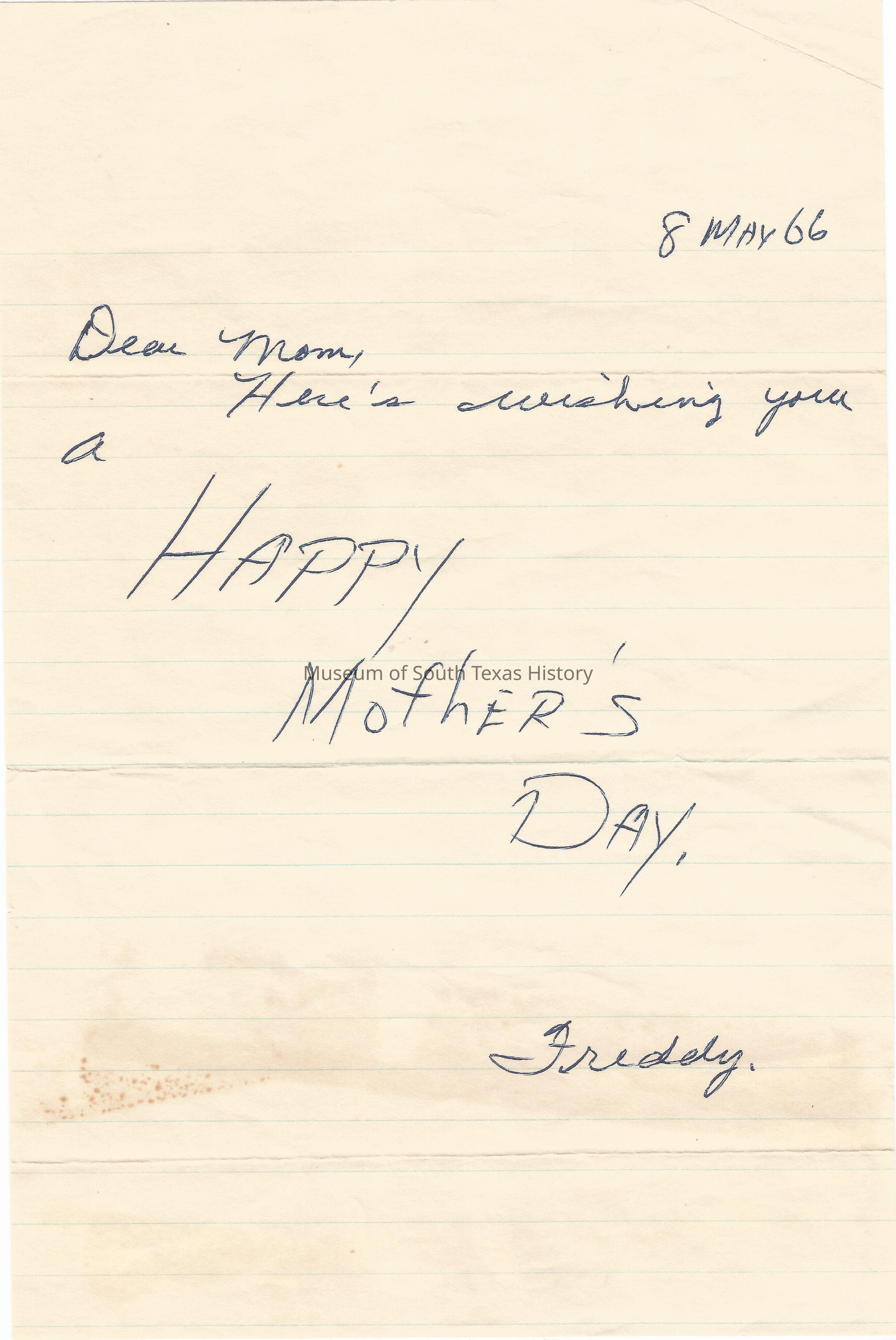 Letter from Freddy Gonzalez to his mother.