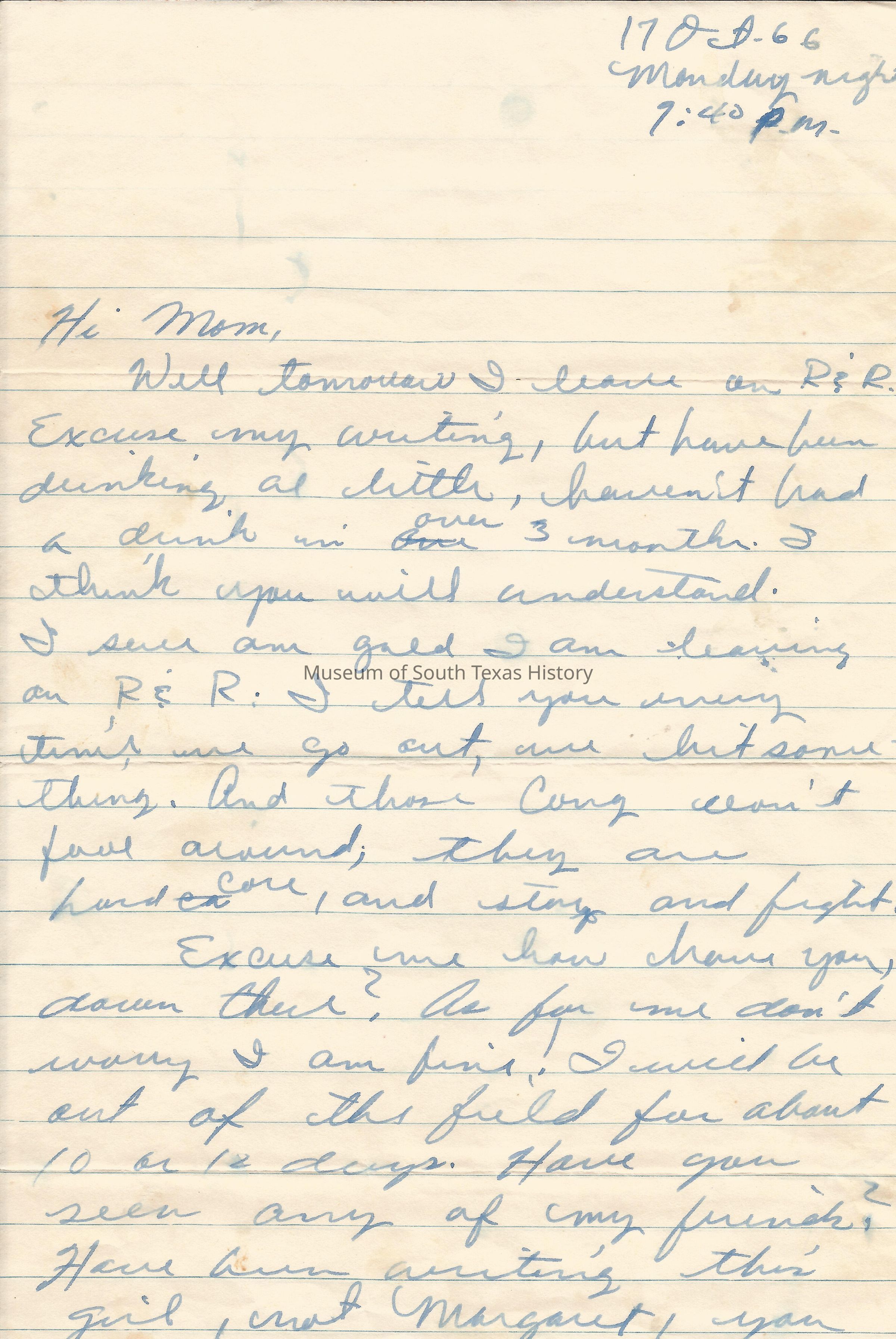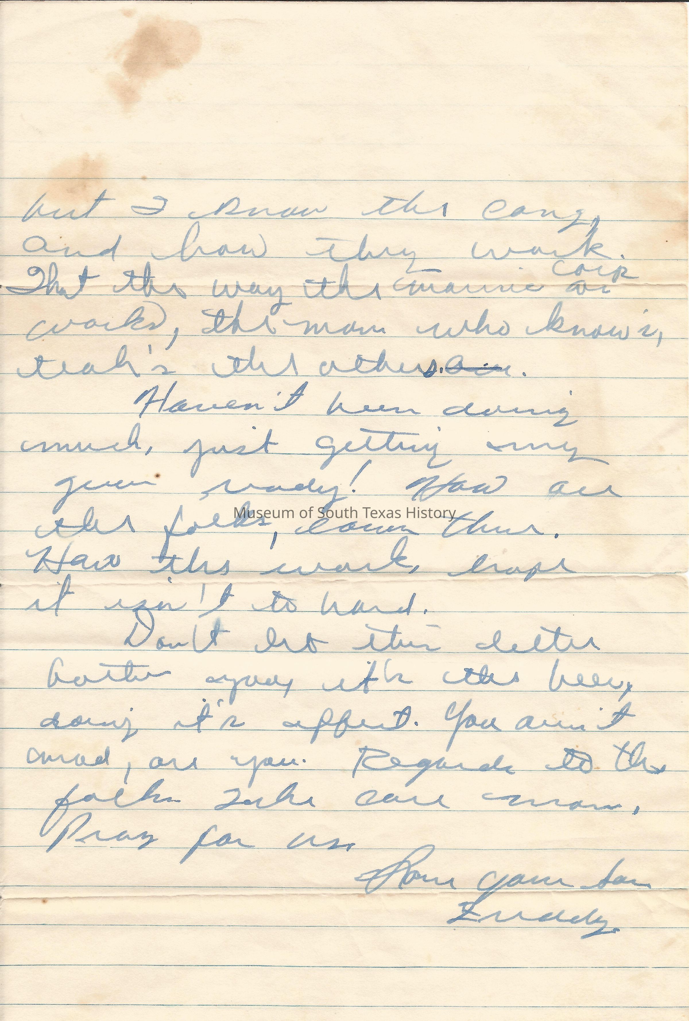 Letter from Freddy Gonzalez to his mother