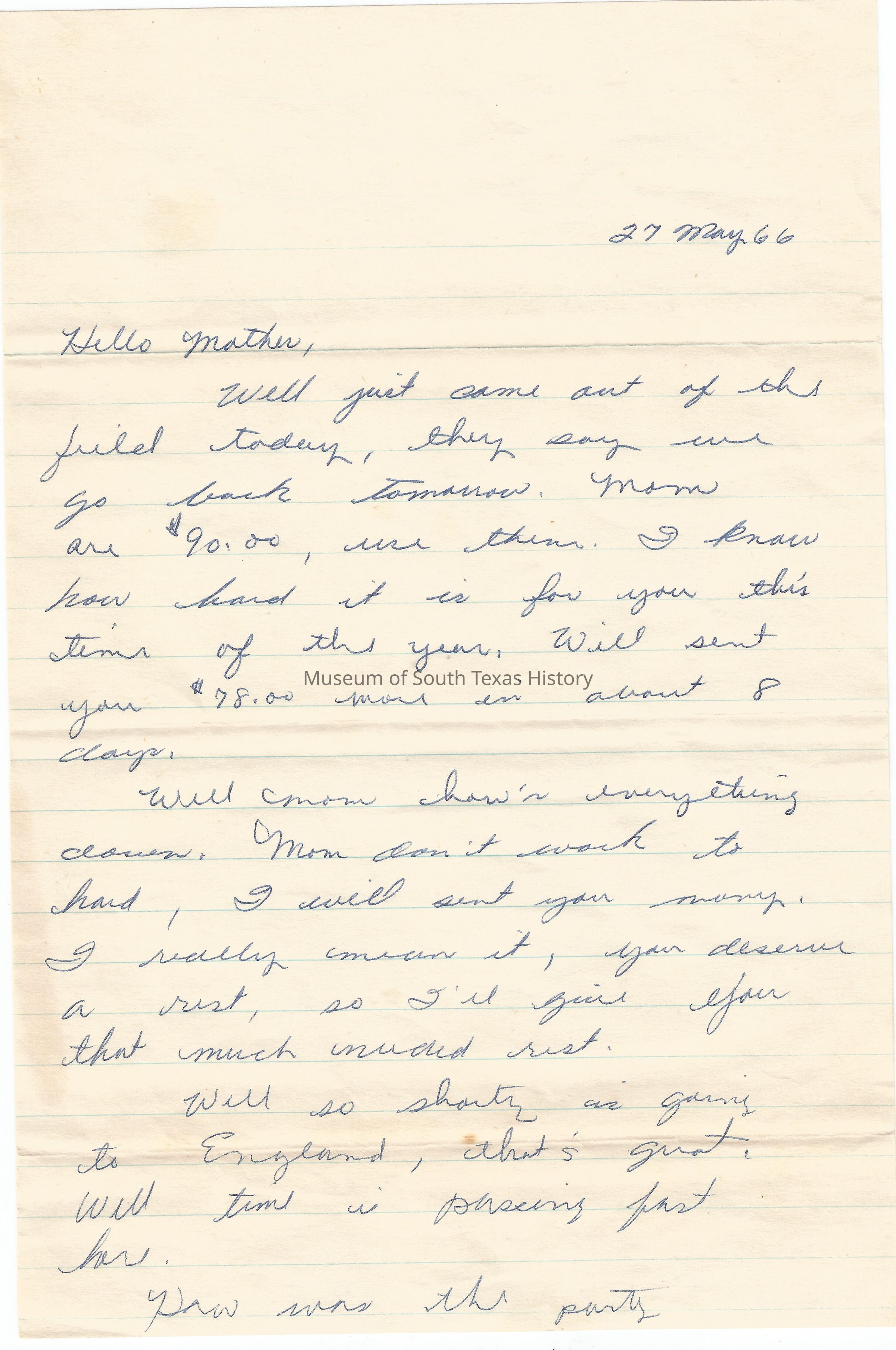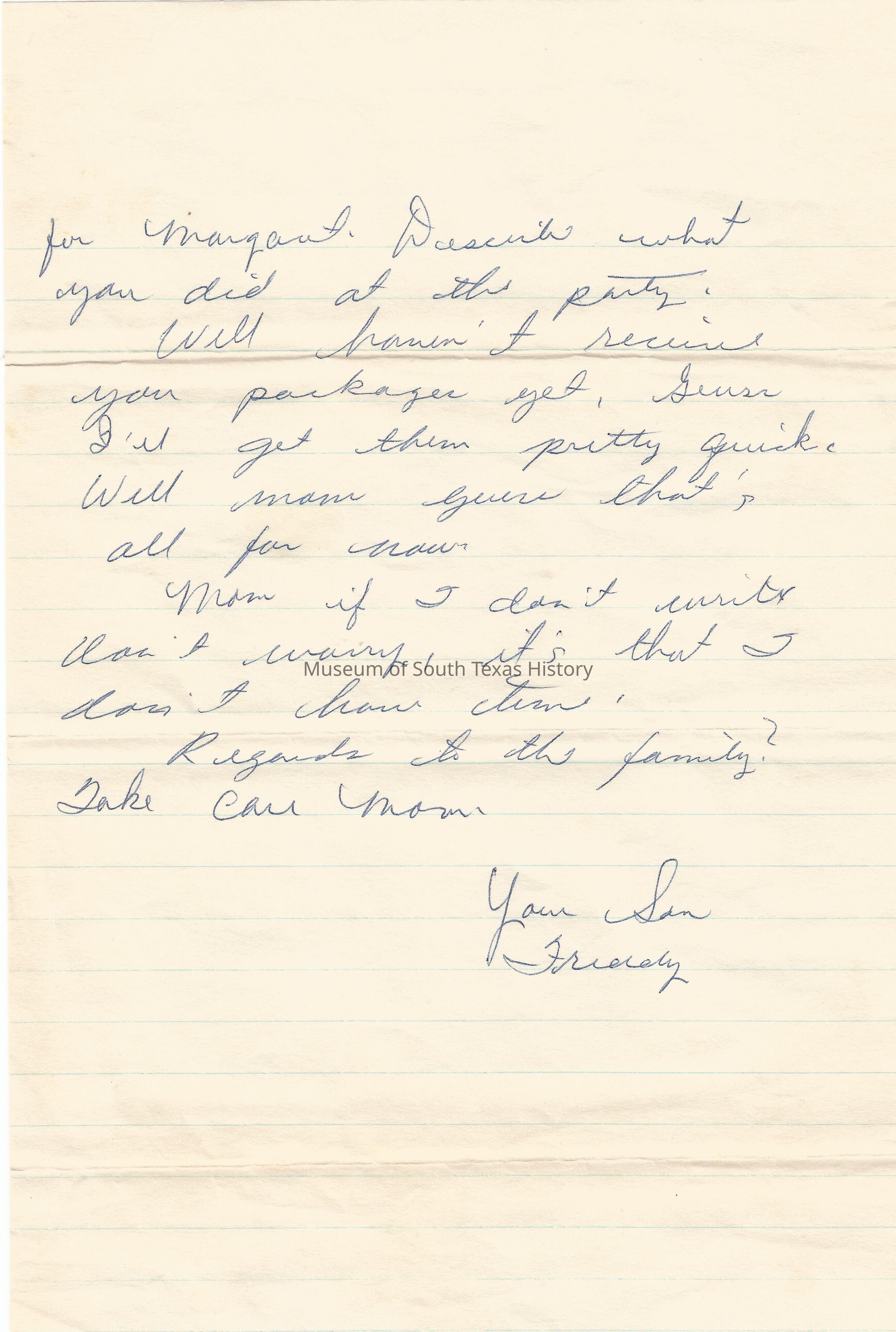 Letter from Freddy Gonzalez to his mother
