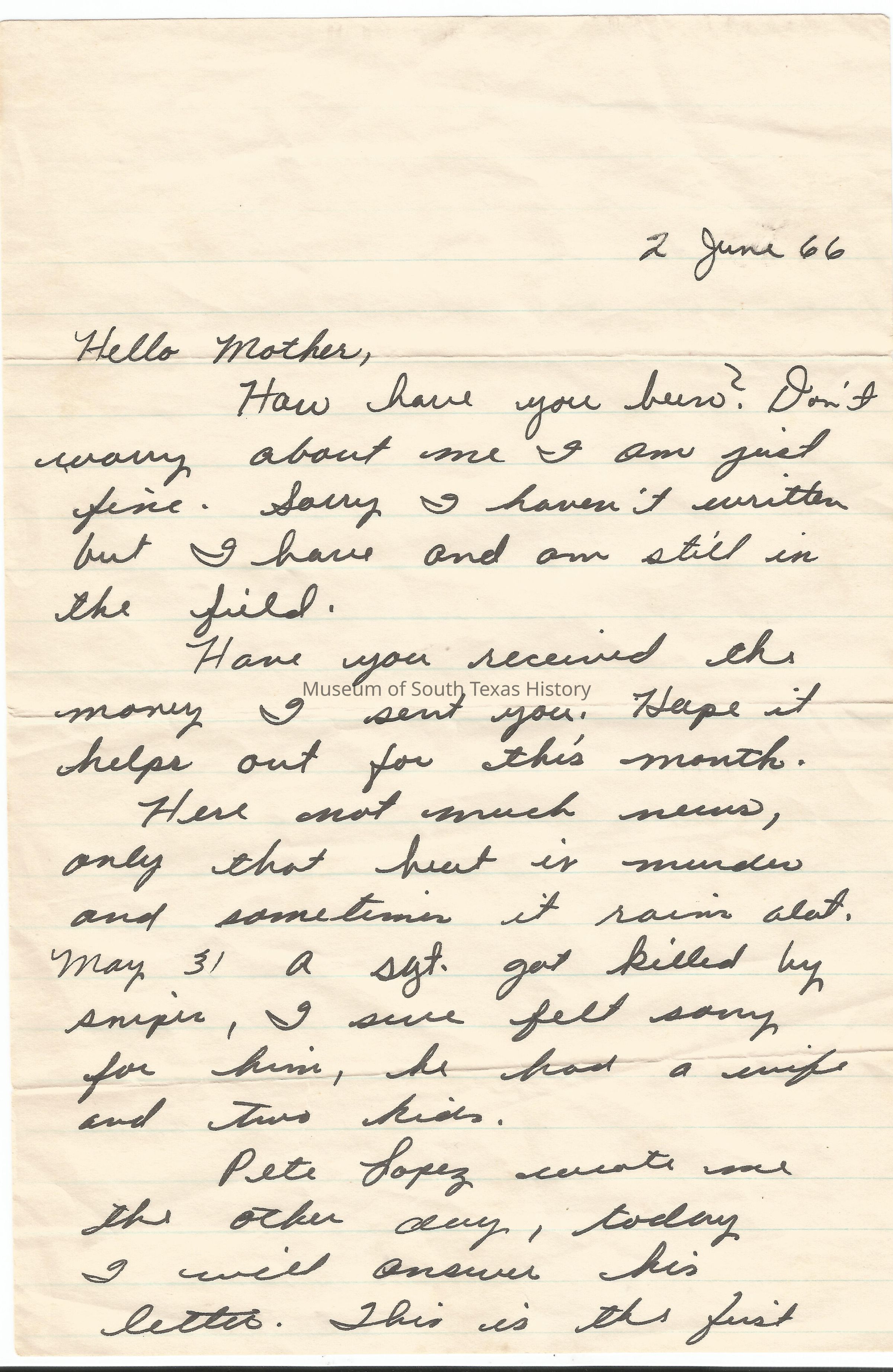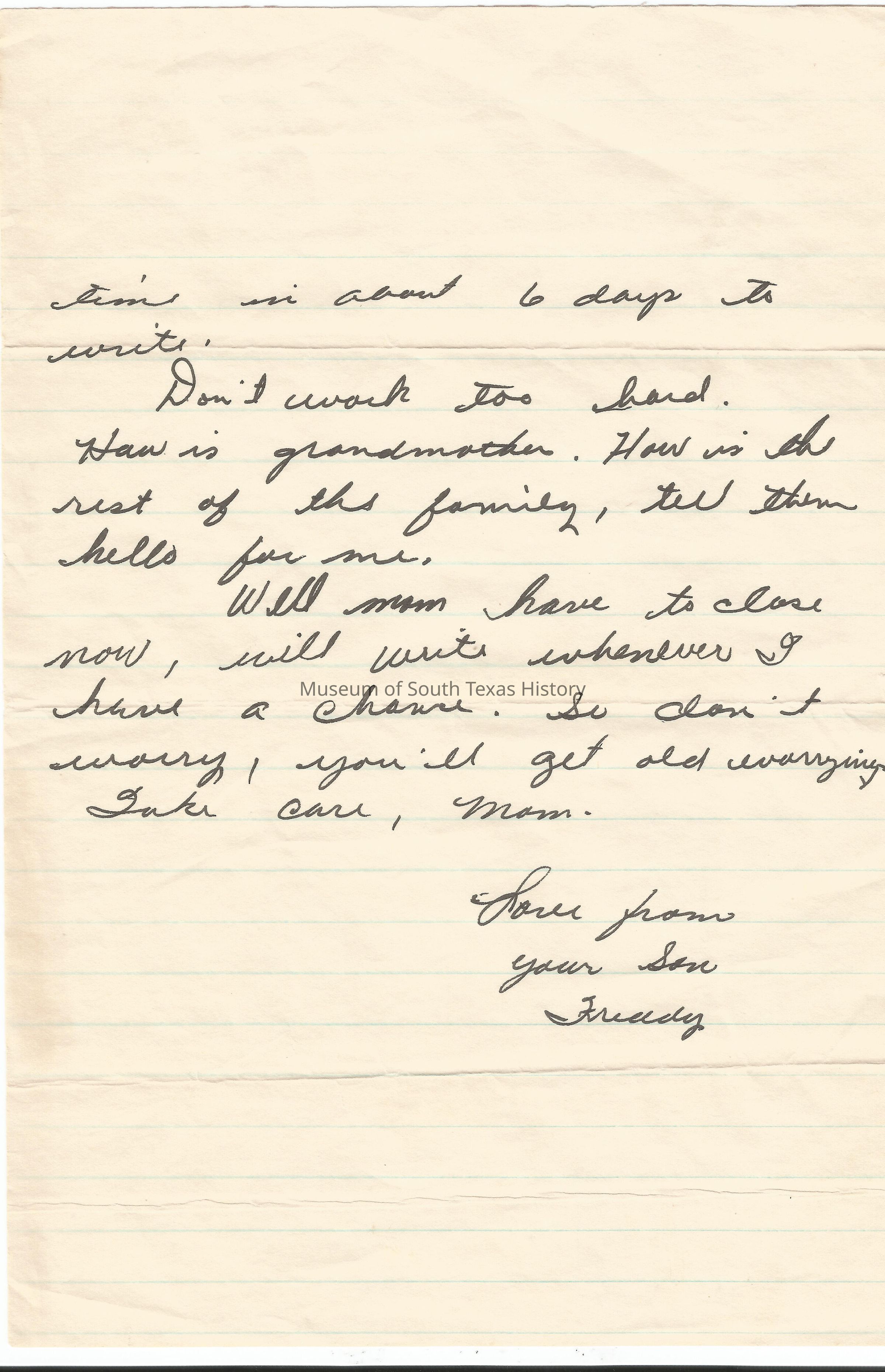 Letter from Freddy Gonzalez to his mother