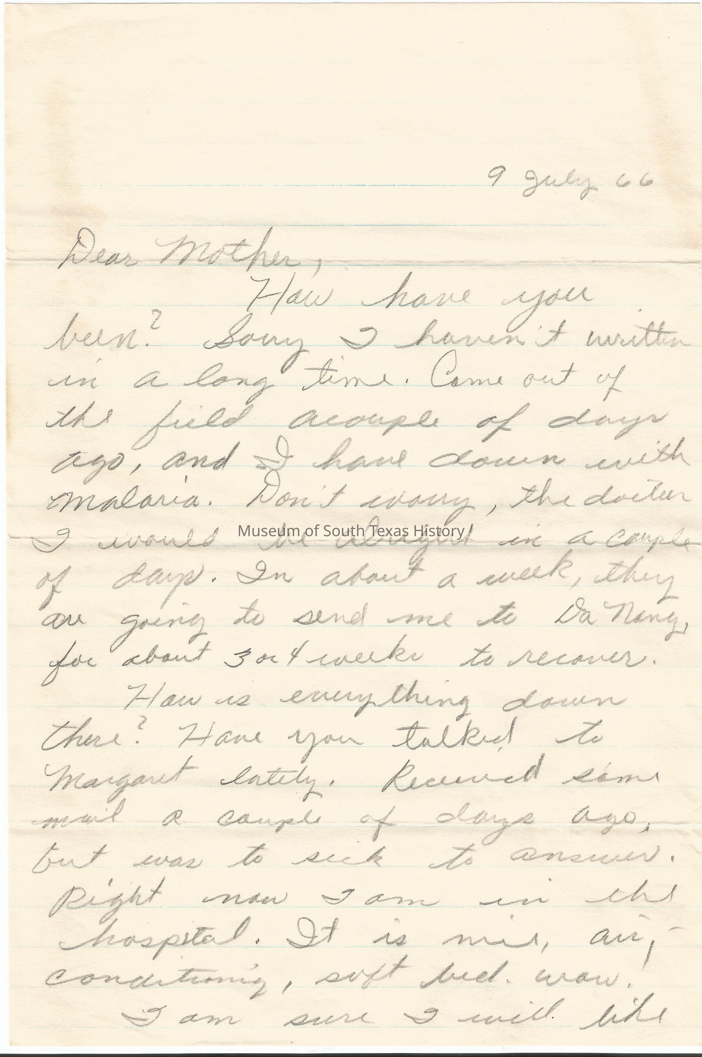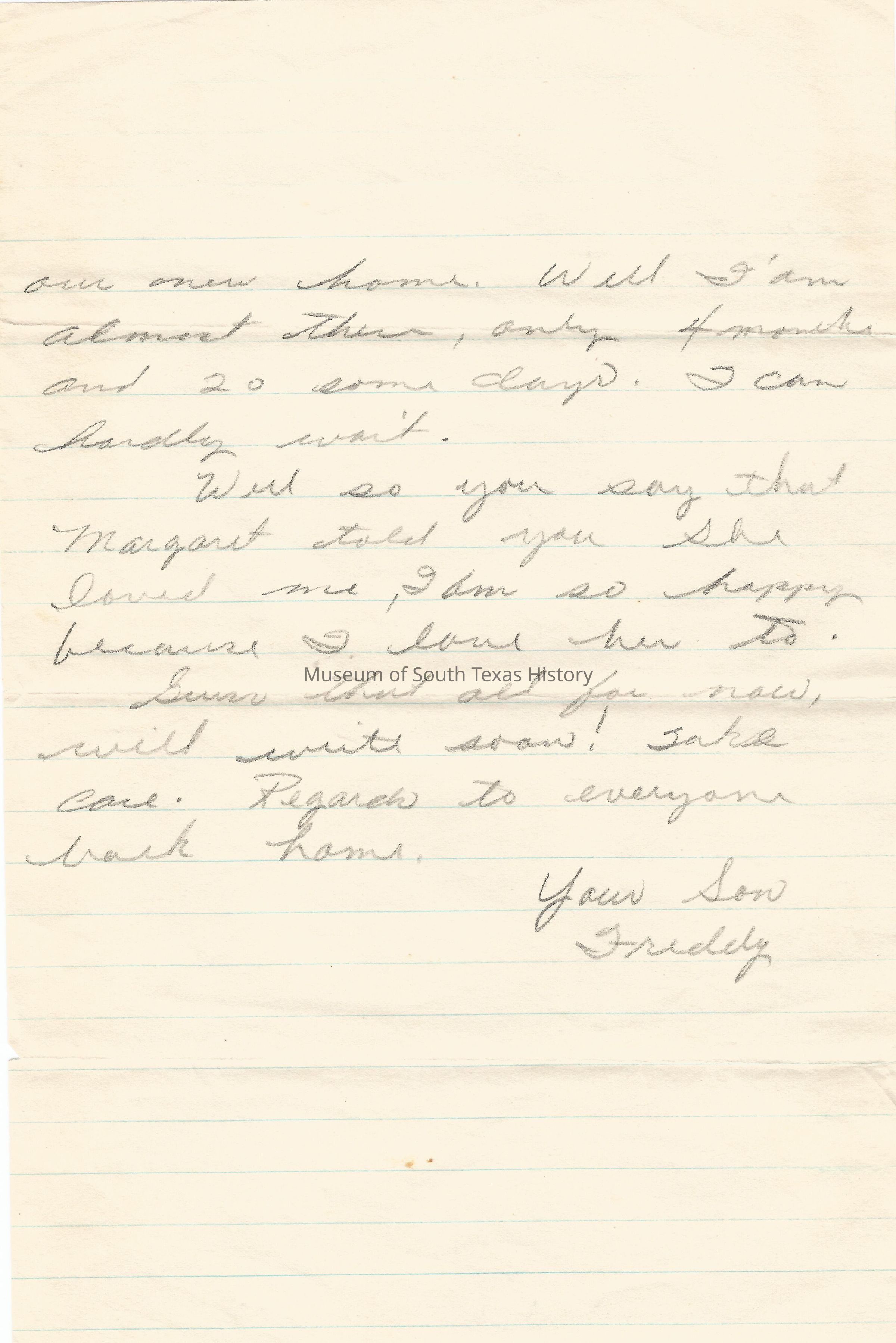 Letter from Freddy Gonzalez to his mother