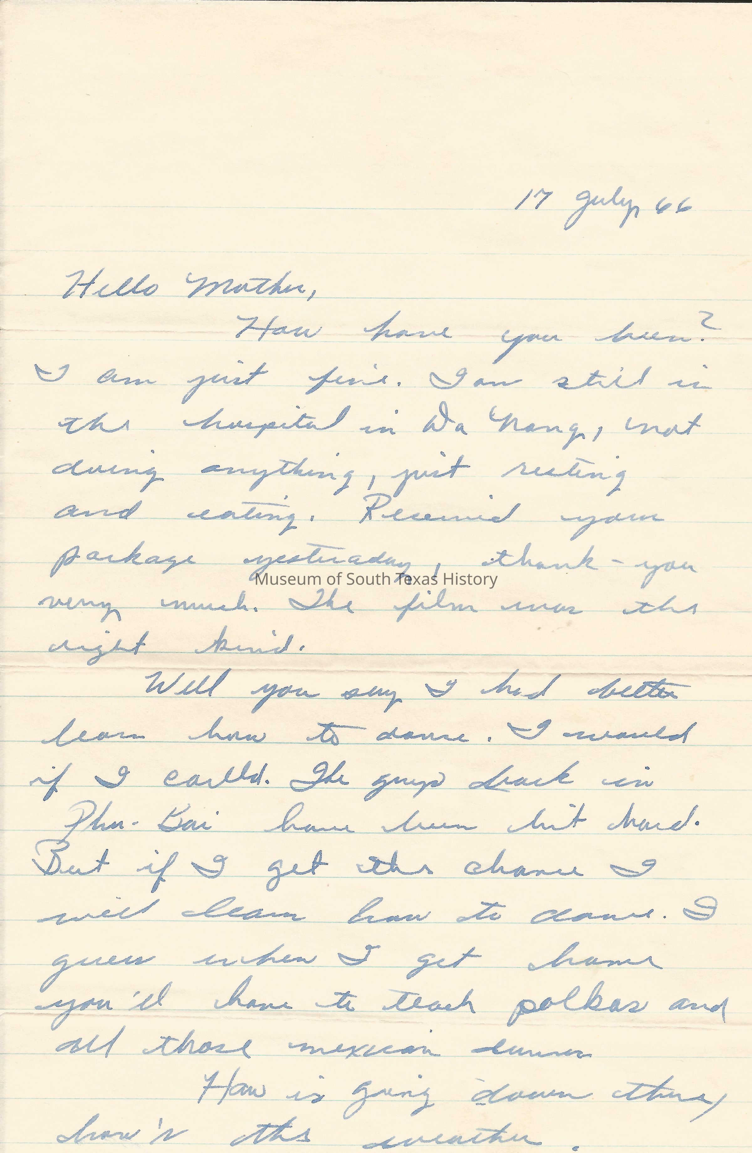 Letter from Freddy Gonzalez to his mother