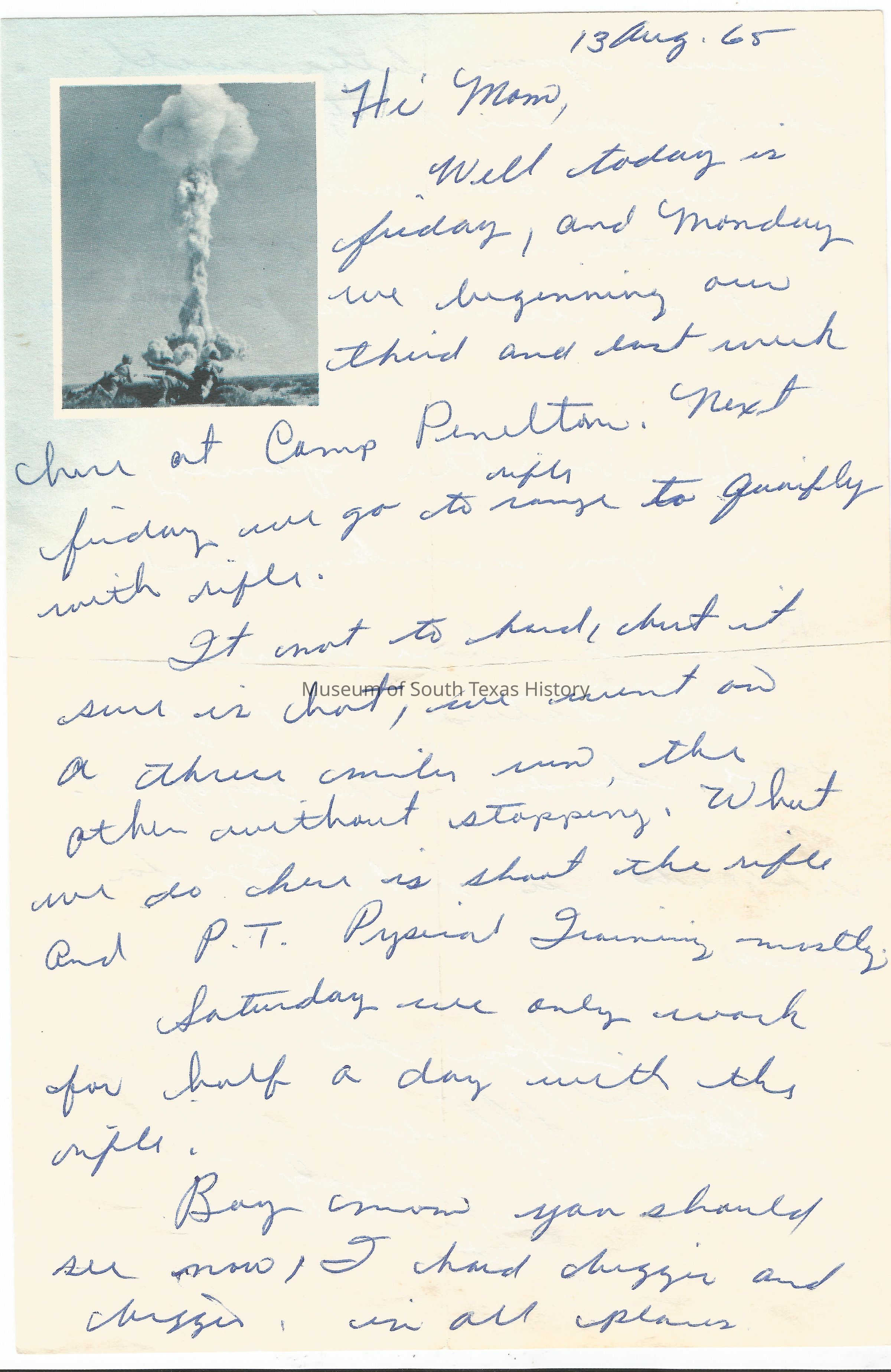 Letter from Alfredo Gonzalez to his mother Dolia, August 13, 1965Collection