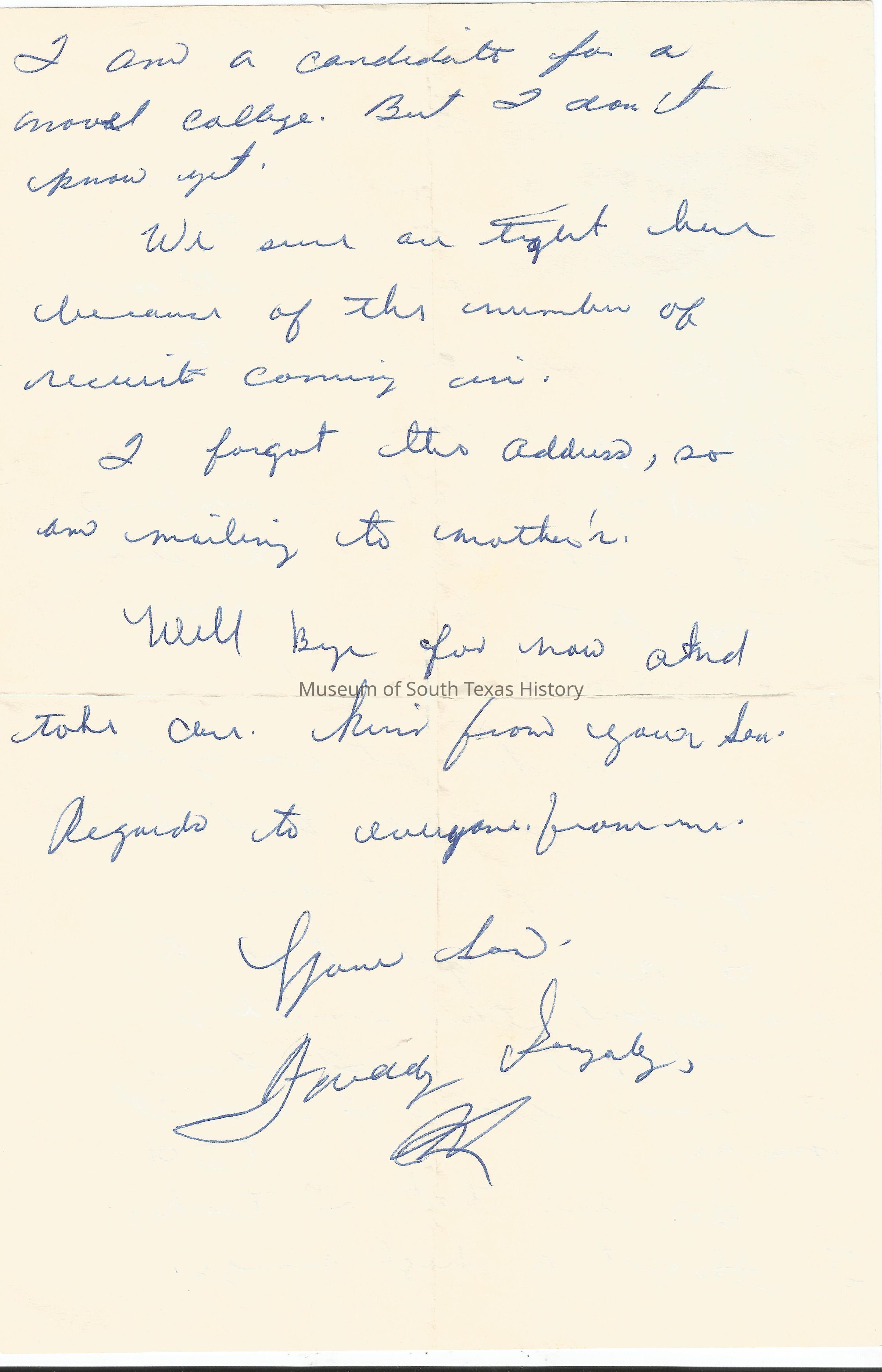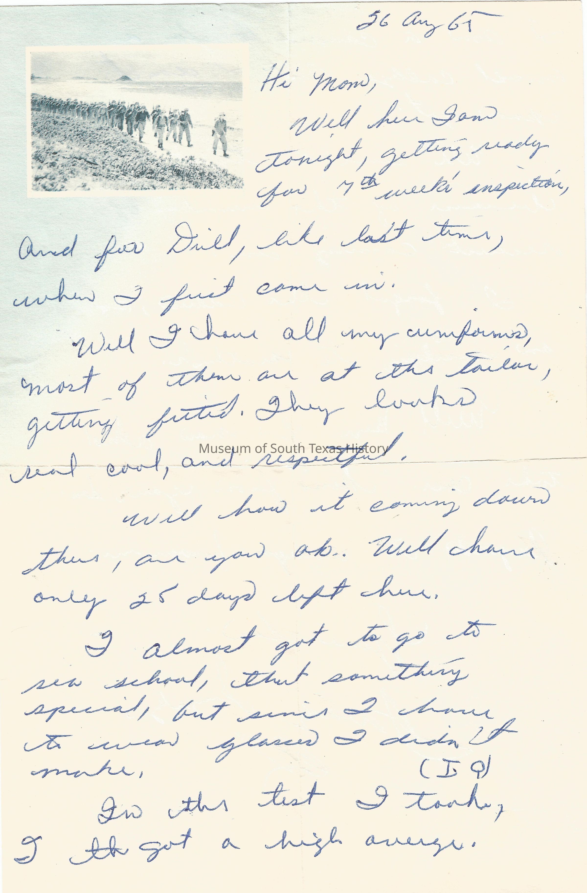 Letter from Alfredo Gonzalez to his mother Dolia, August 26, 1965.Collection