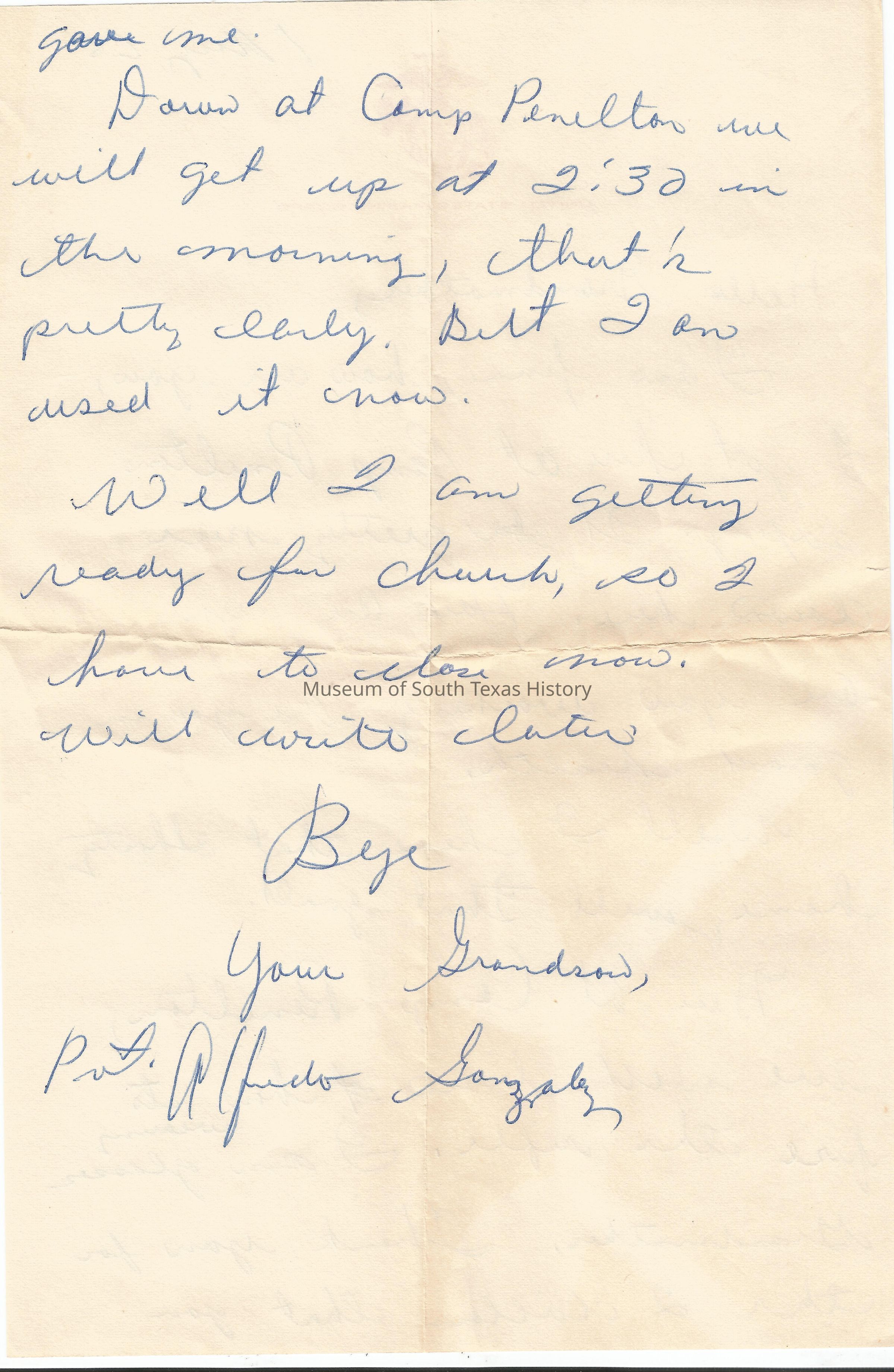Letter from Freddy Gonzalez to his grandmother