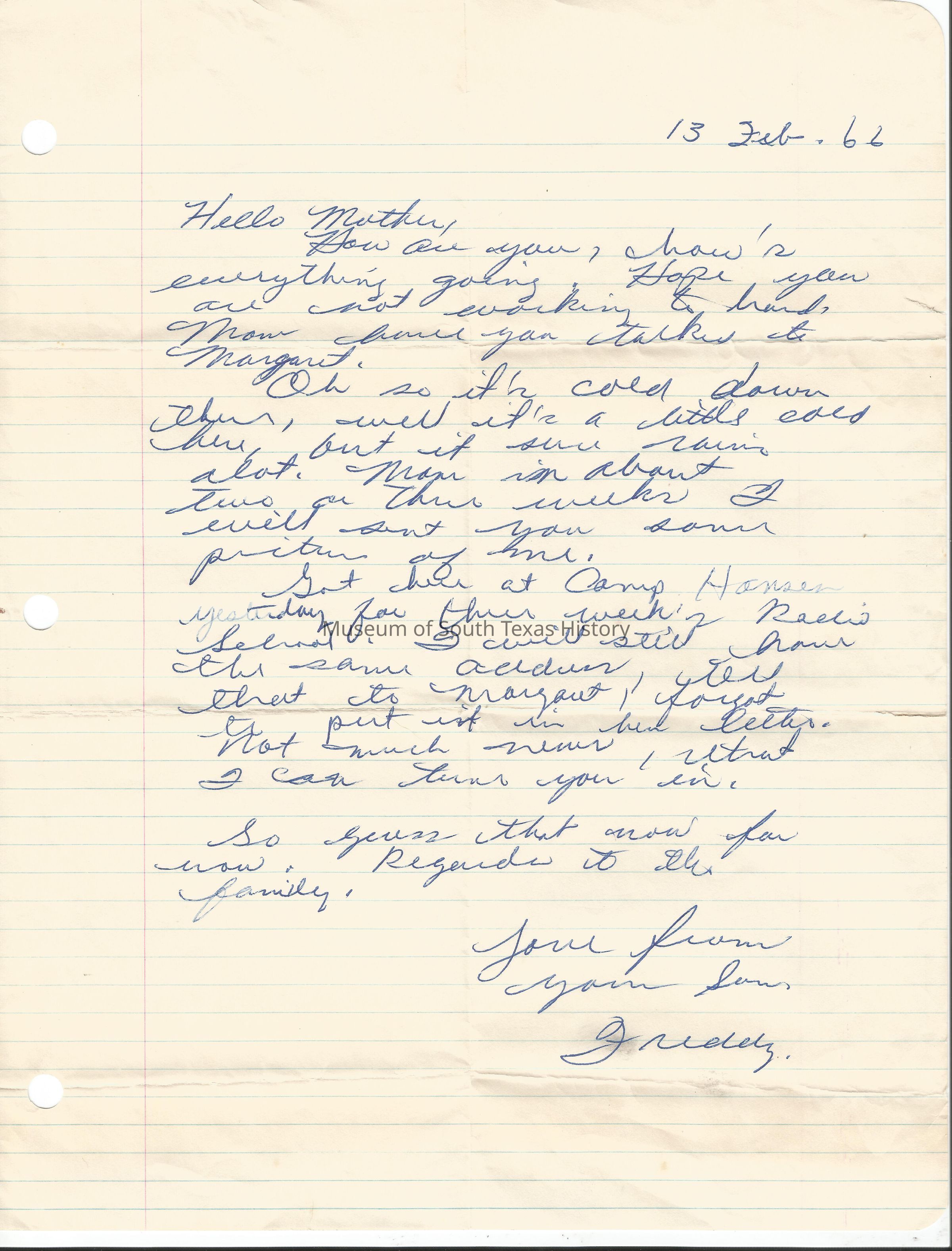 Letter from Freddy Gonzalez to his mother