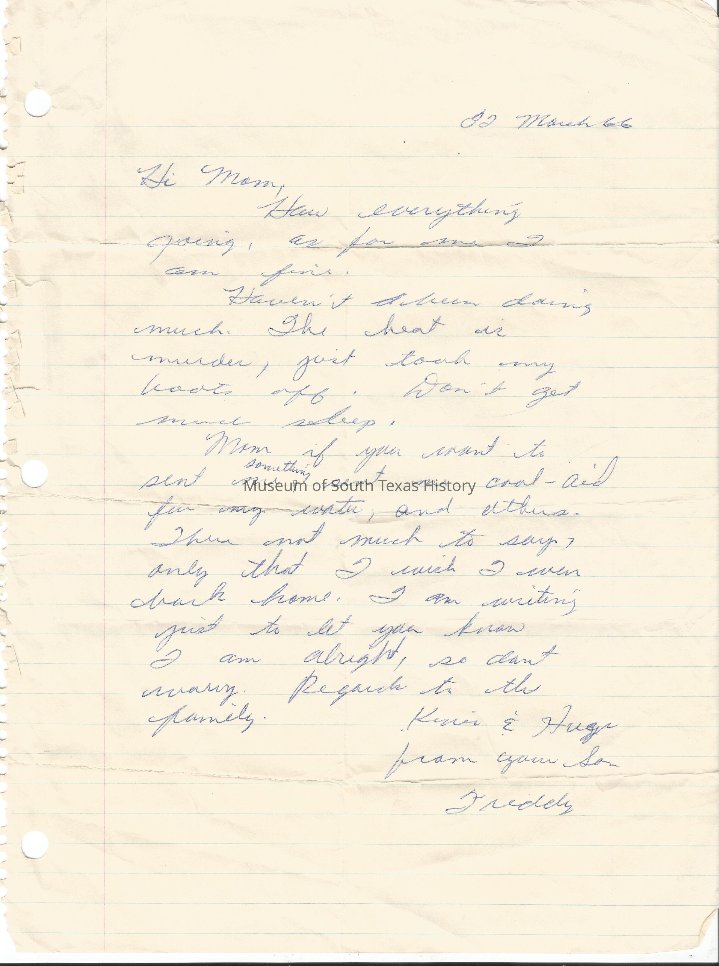 Letter from Freddy Gonzalez to his mother