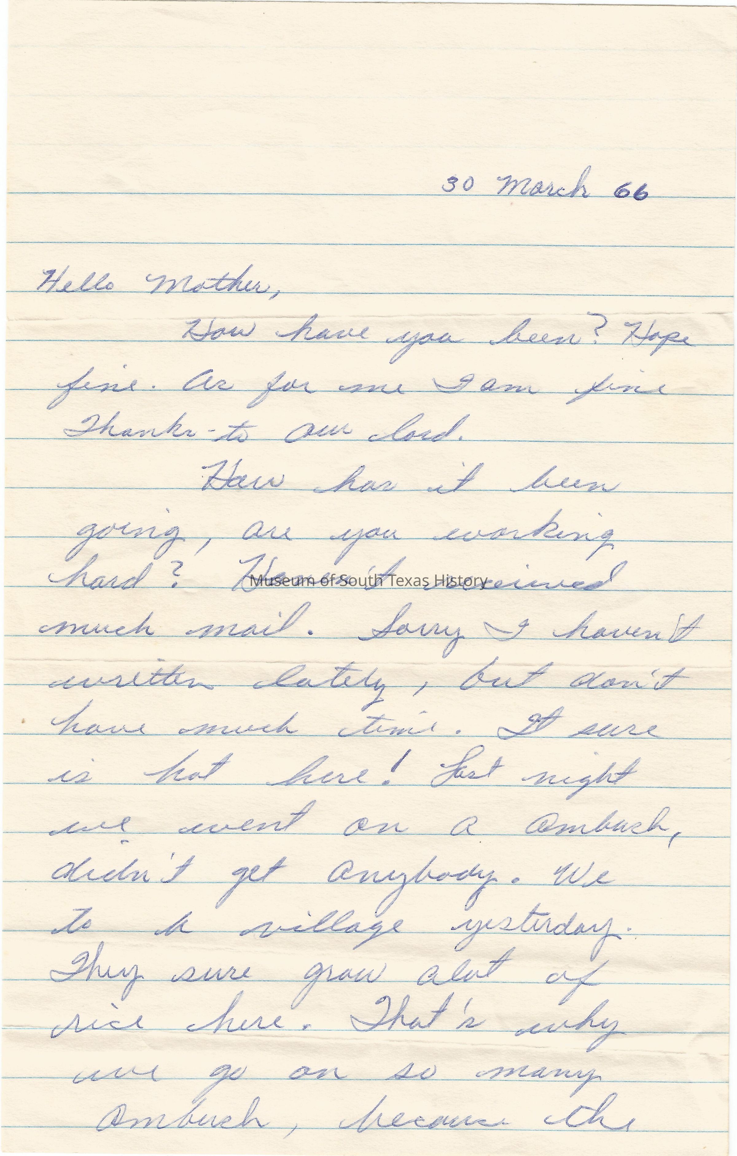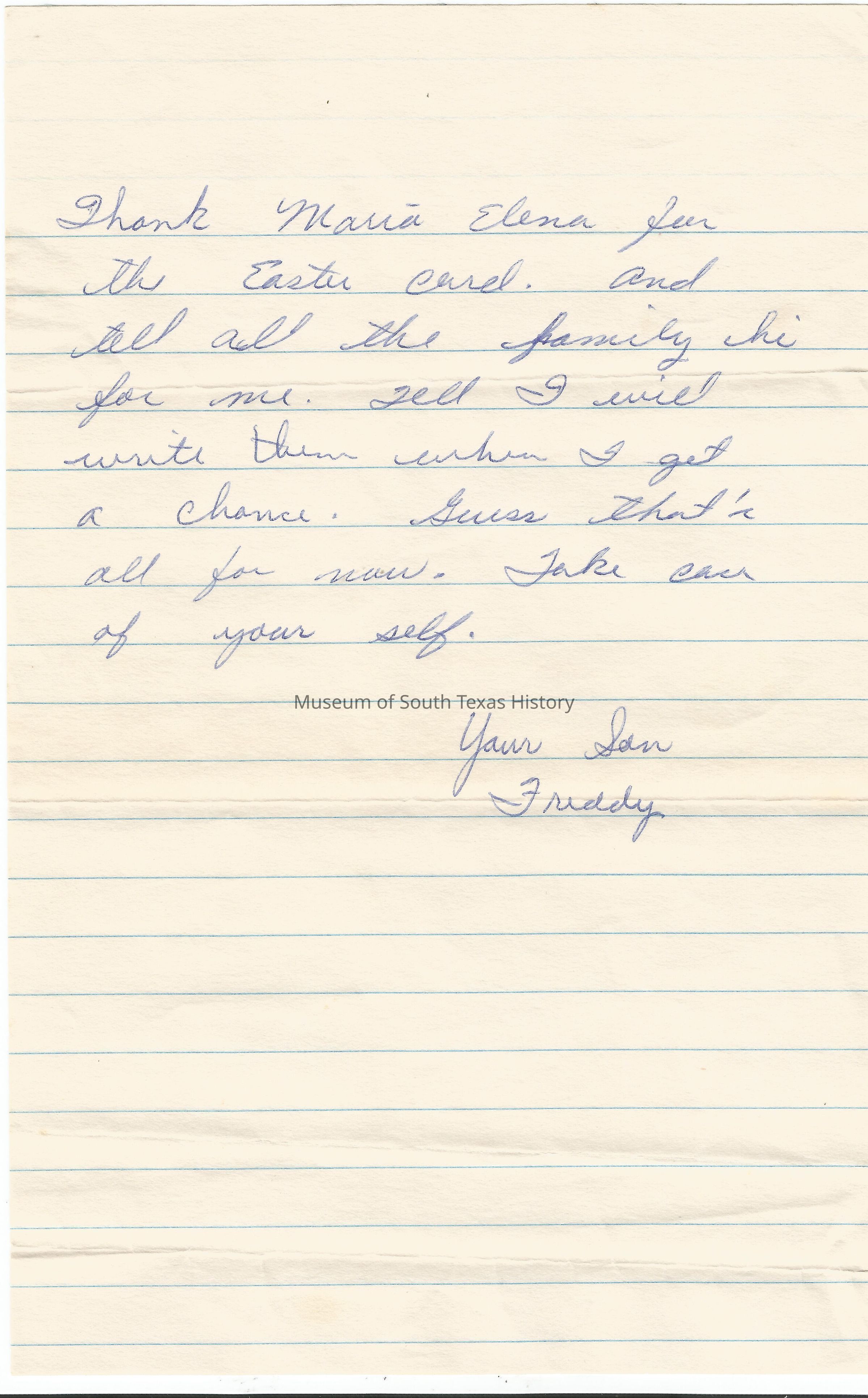 Letter from Freddy Gonzalez to his mother