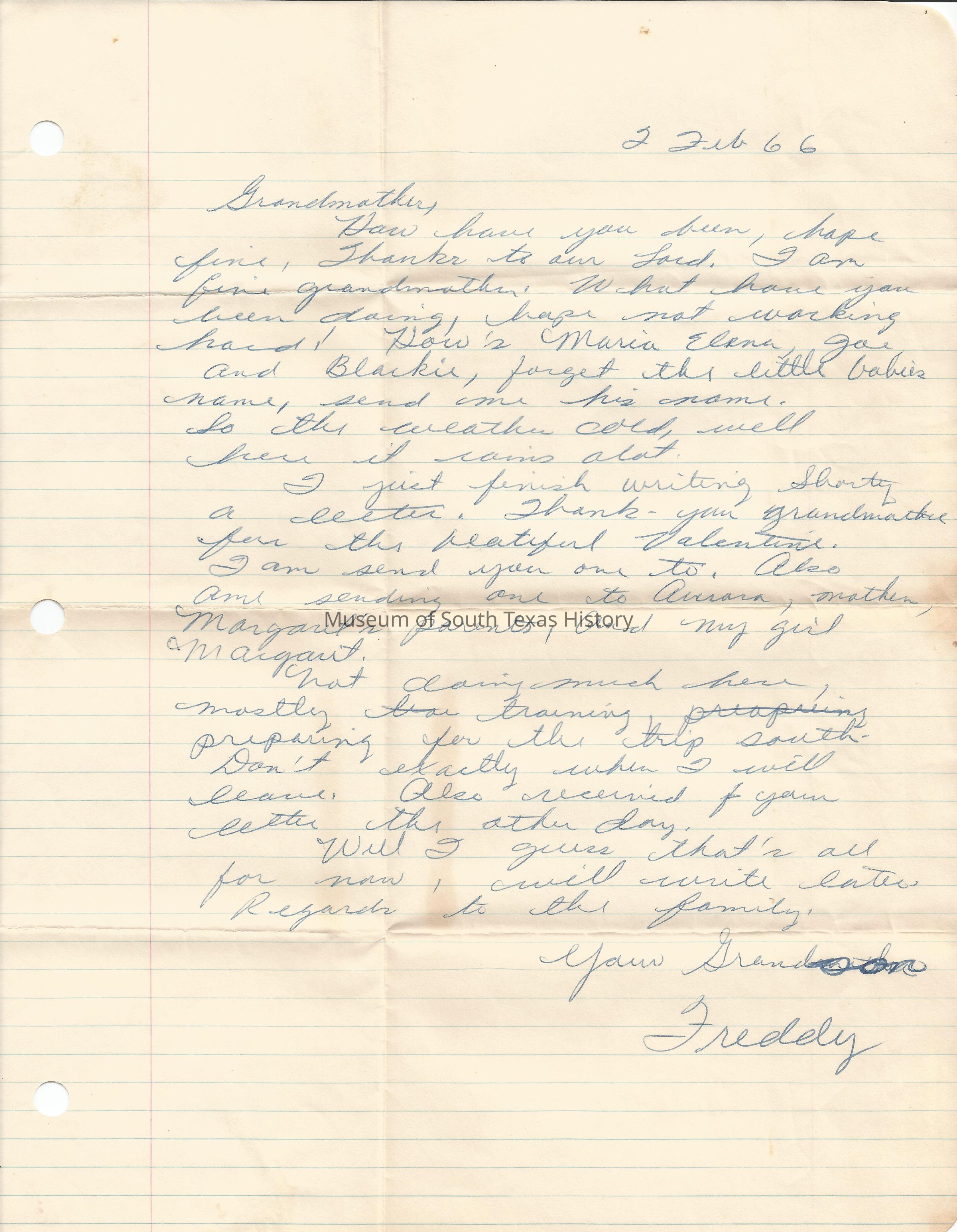 Letter from Freddy Gonzalez to his grandmother