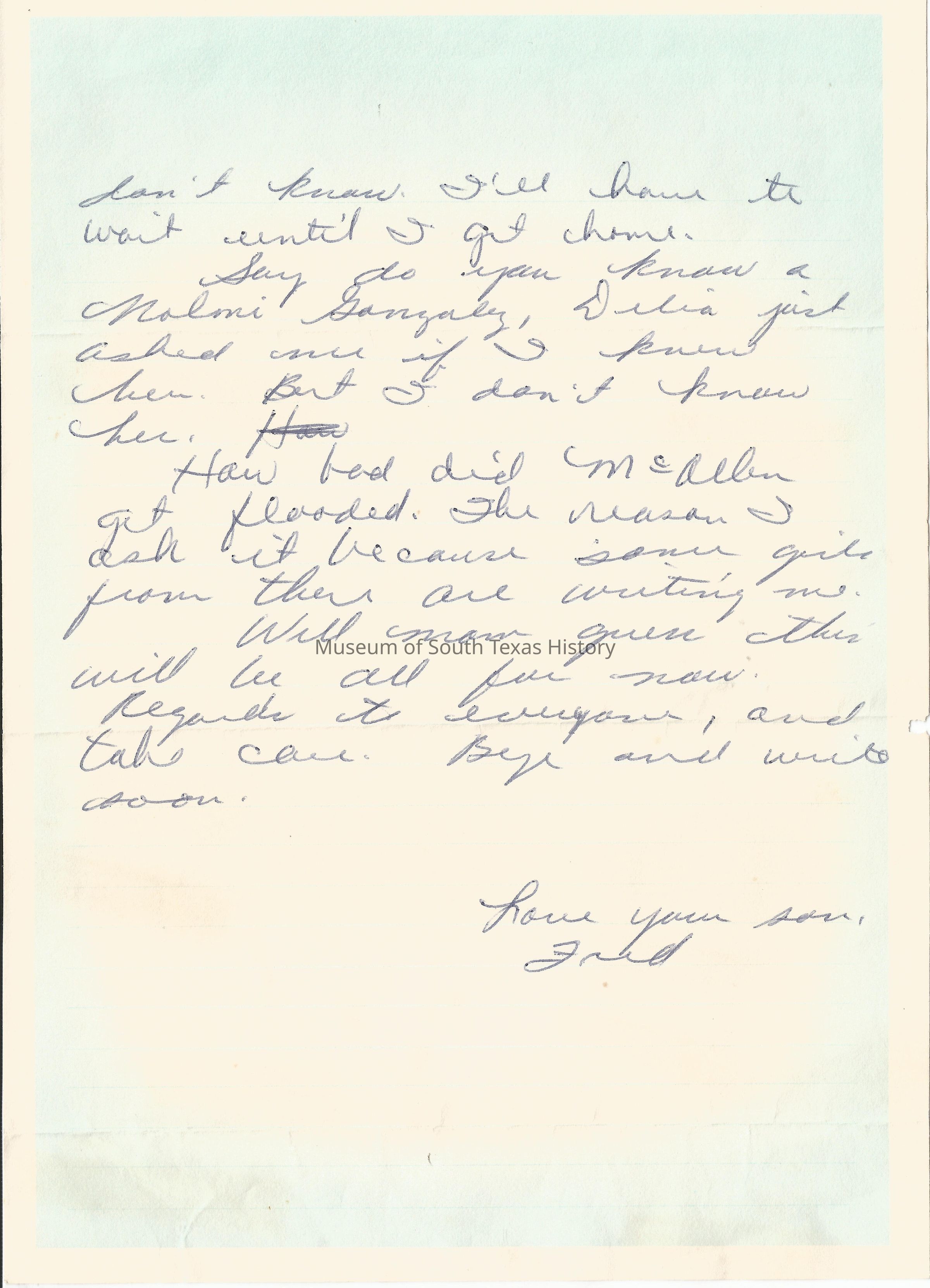 Letter from Freddy Gonzalez to his mother