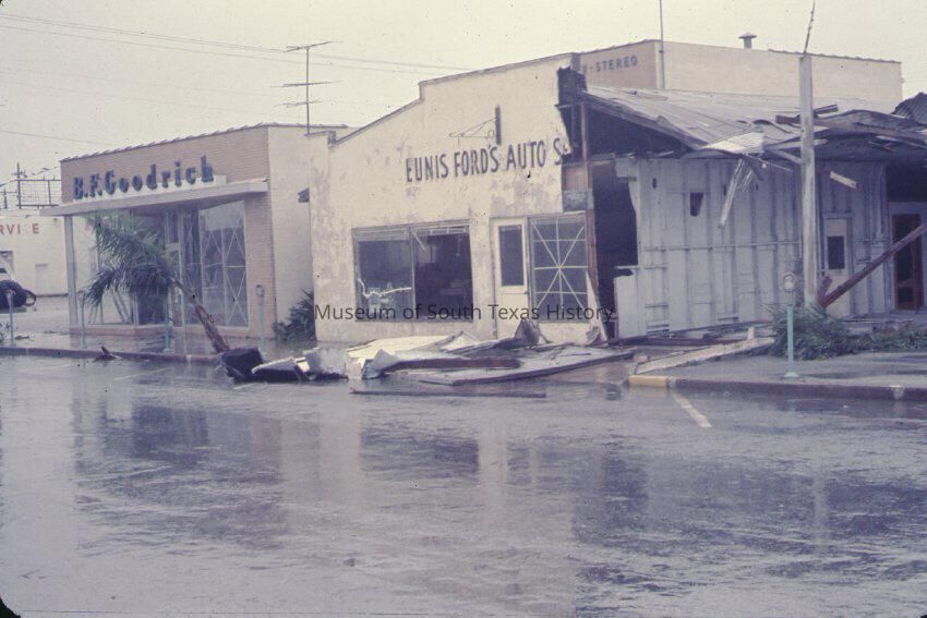 BF Goodrich and Eunis Ford buildings on Missouri Ave after Hurricane Beulah