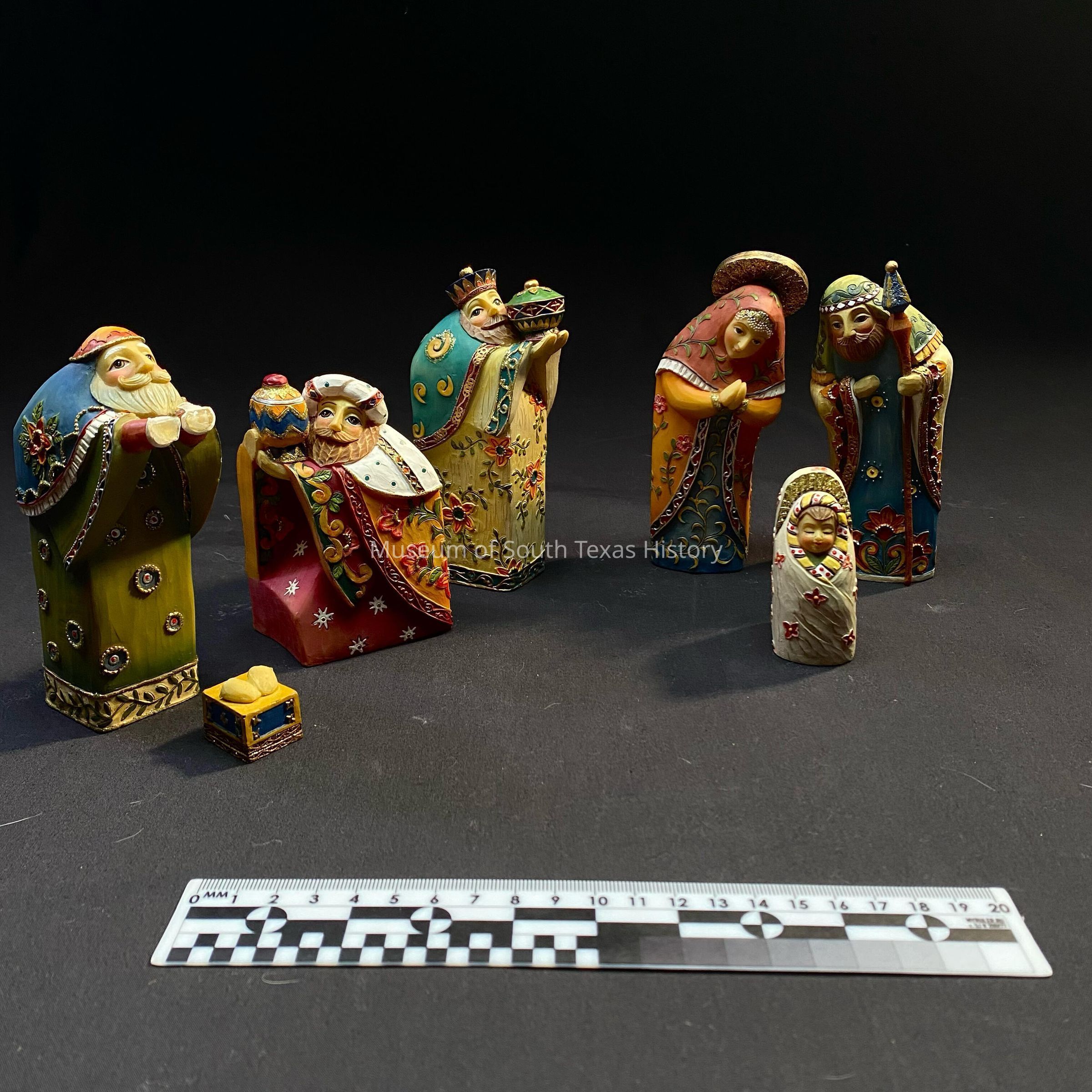 the Bishop willed his collection of nativity scenes to the Museum of South Texas History and to the Historic Brownsville Museum. For many years Bishop Peña displayed the nativity scenes year-round. He considered them not just a seasonal theme, but a reminder of God’s divine love. He enjoyed sharing them with those who visited, using them as medium through which to express his faith. Inspired visitors often gifted Bishop Peña with additional nativity scenes.Collection