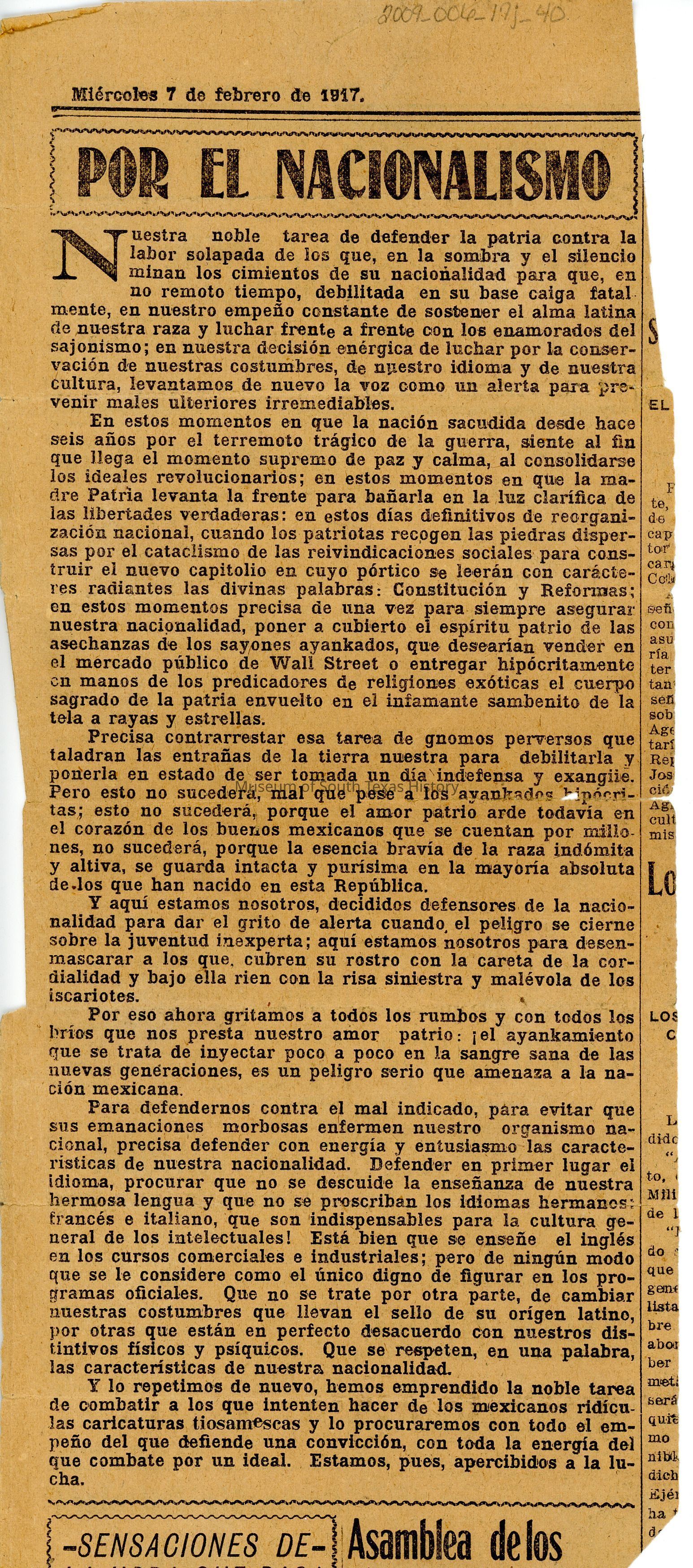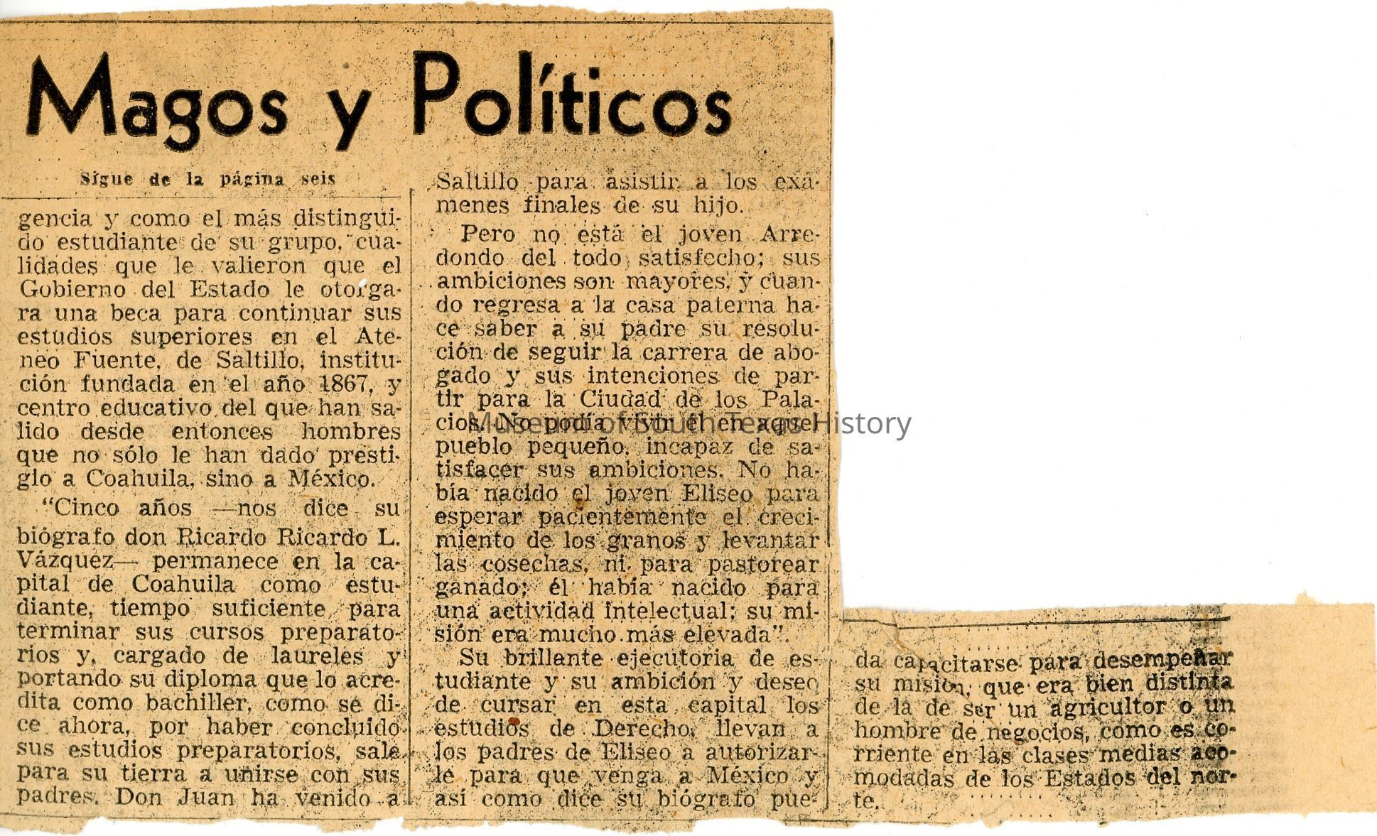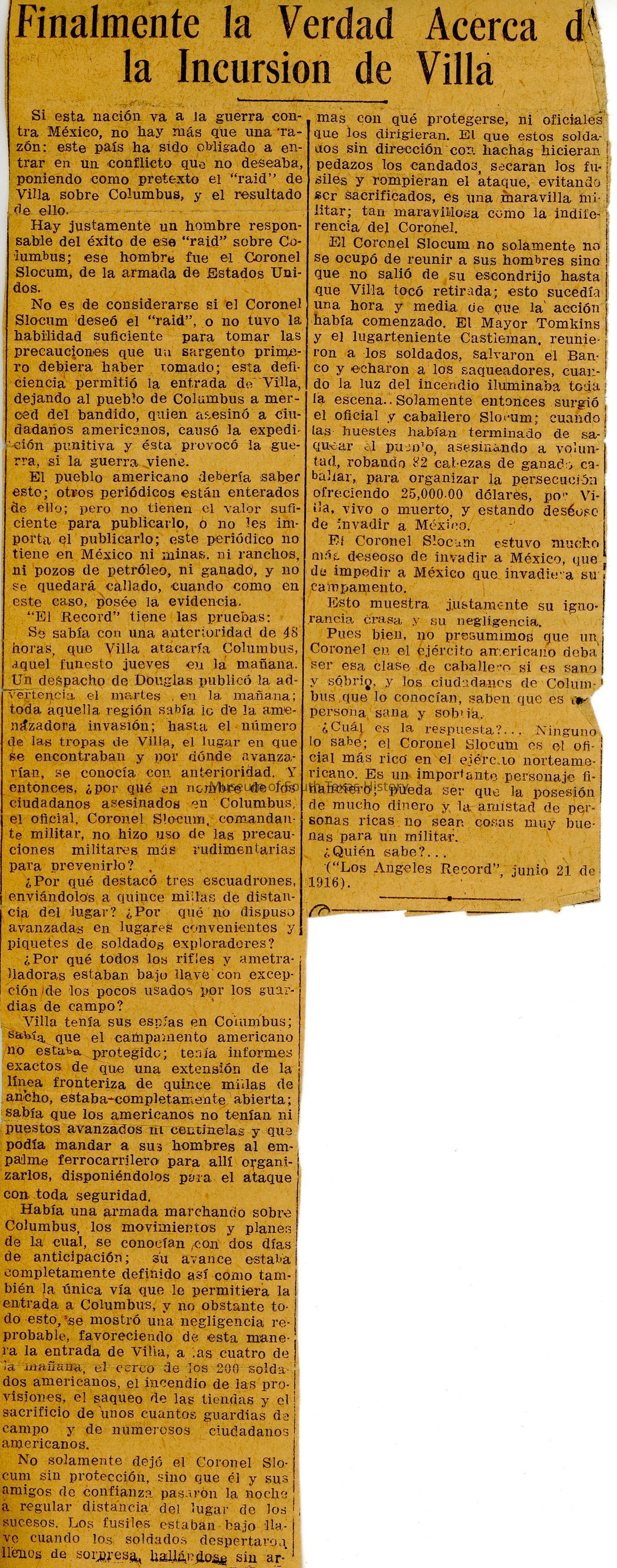 Newspapers and clippingsEntry/Object ID