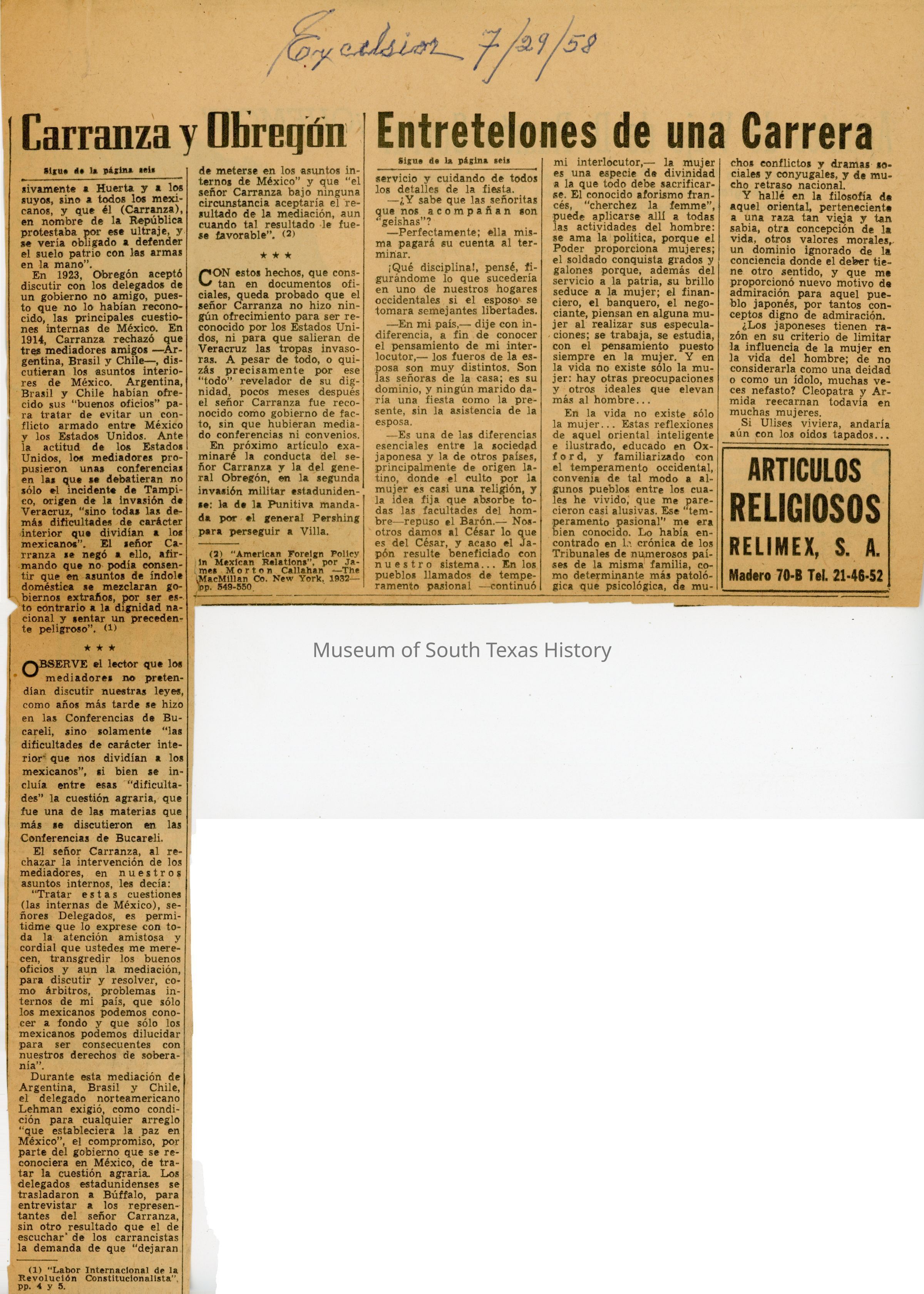 Agustin Solis de la Garza CollectionAcquisition