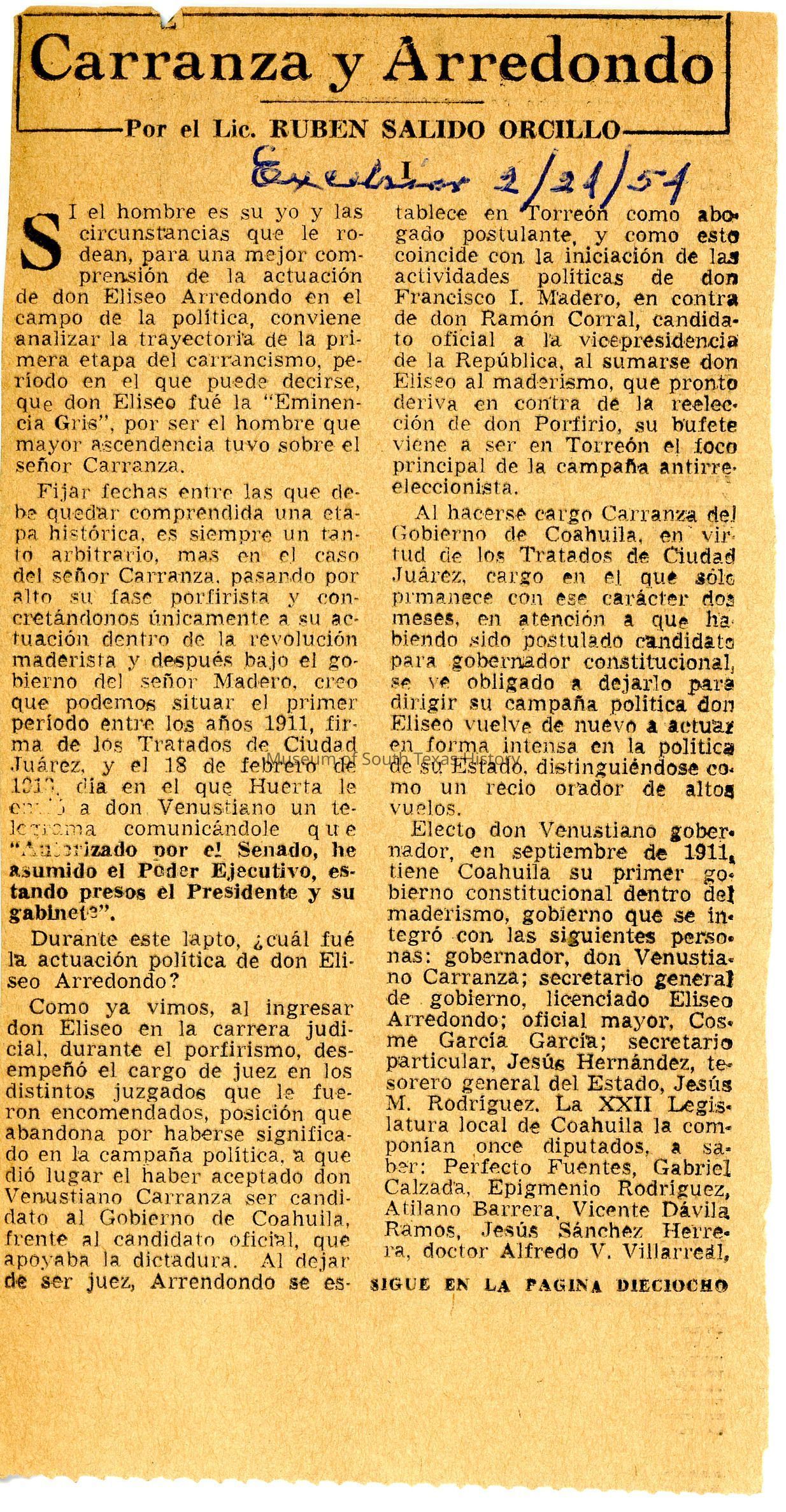 Agustin S. de la Garza Collection