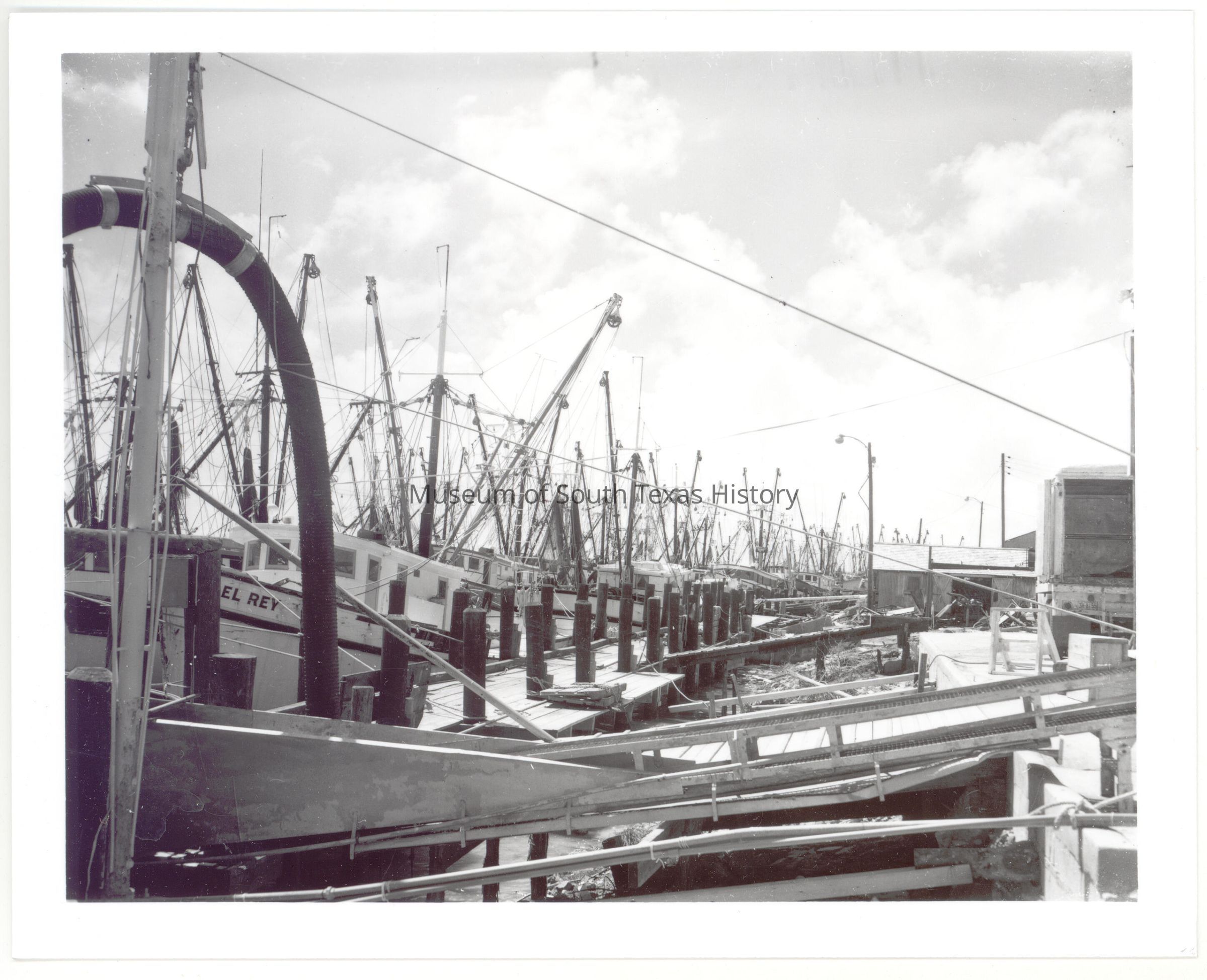 View of the Port Isabel shrimp fleet after the hurricane.Photograph Details