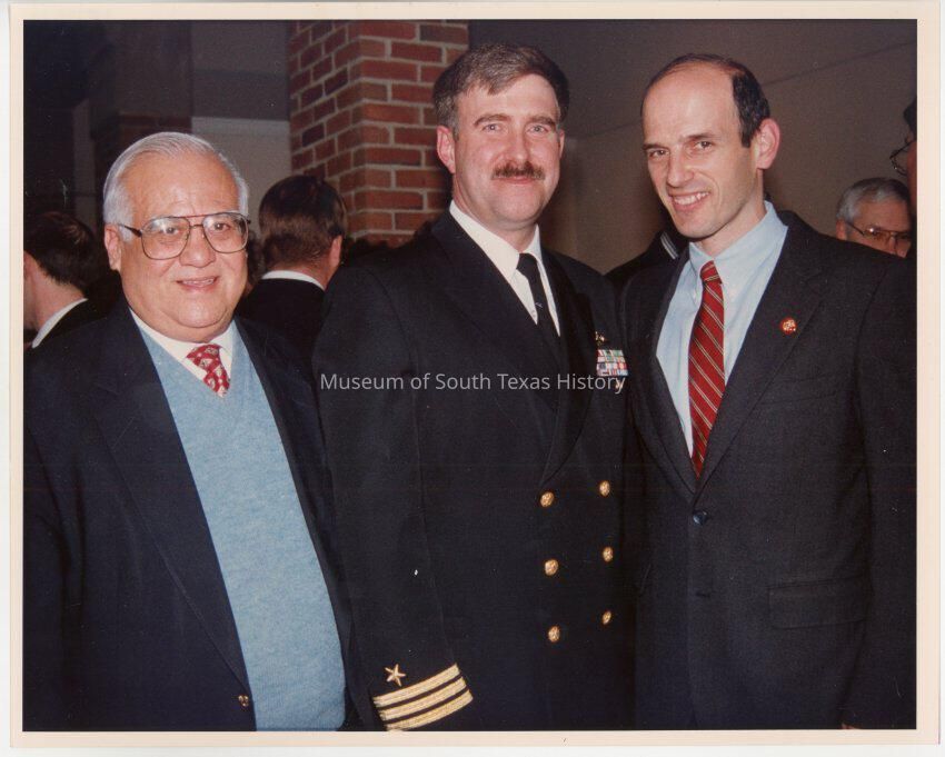 Kika de la Garza, CDR Frederick R. Allard Jr, Honorable John E. Baldacci at the reception held for Dolia Gonzalez after the launching of the USS Gonzalez.Collection