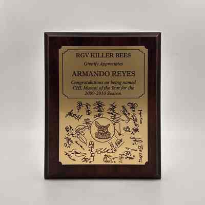 Central Hockey League (CHL) Mascot of the Year plaque, Armando Reyes, 2009-2010
